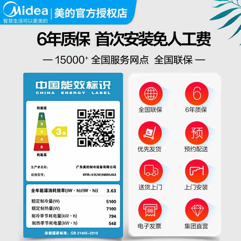 Midea vertical air conditioner large 2 hp P frequency conversion heating and cooling home living room cylindrical cabinet floor-standing official flagship Zhixing