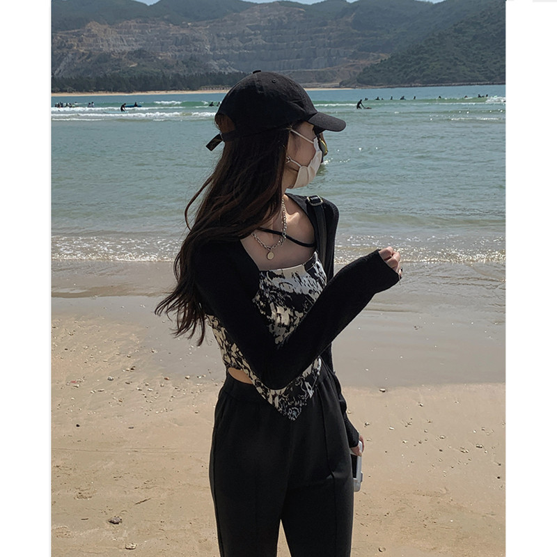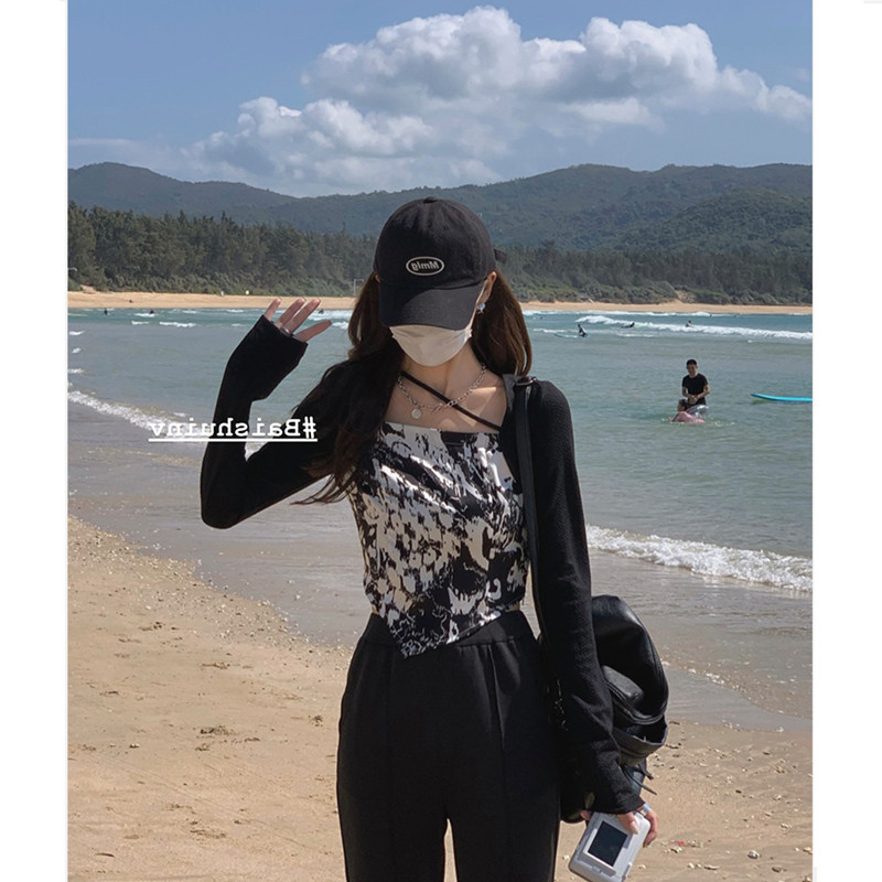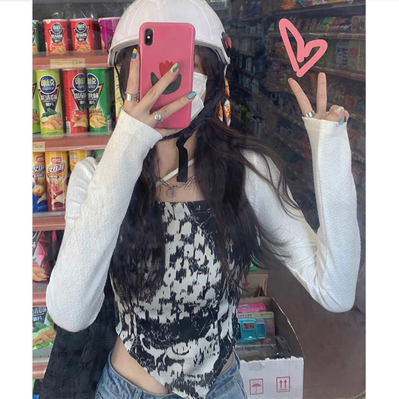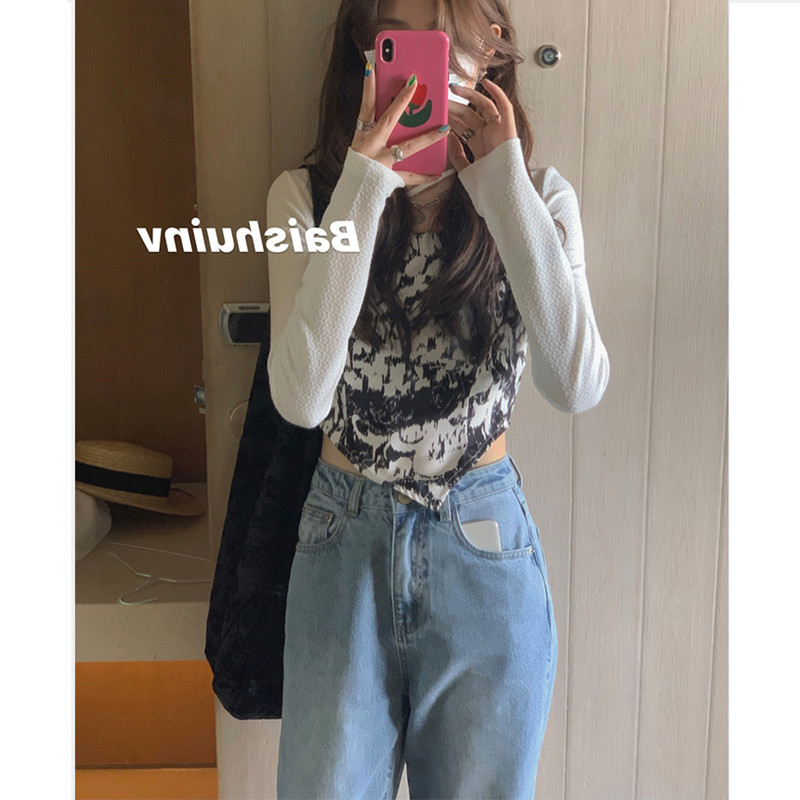 Printed base shirt Women 2021 Early Autumn Korean Slim Slim Thin Design Sense Small Small Long Sleeve T-Shirt Top Women