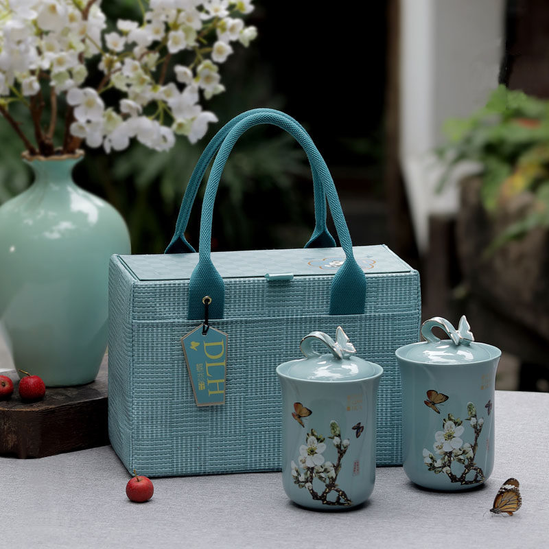 Creative High-end Ceramic Jar Tea Packaging Box Empty Gift Box Green Tea Grand Folongjing Universal Packaging Butterfly Romance Flower Empty Box