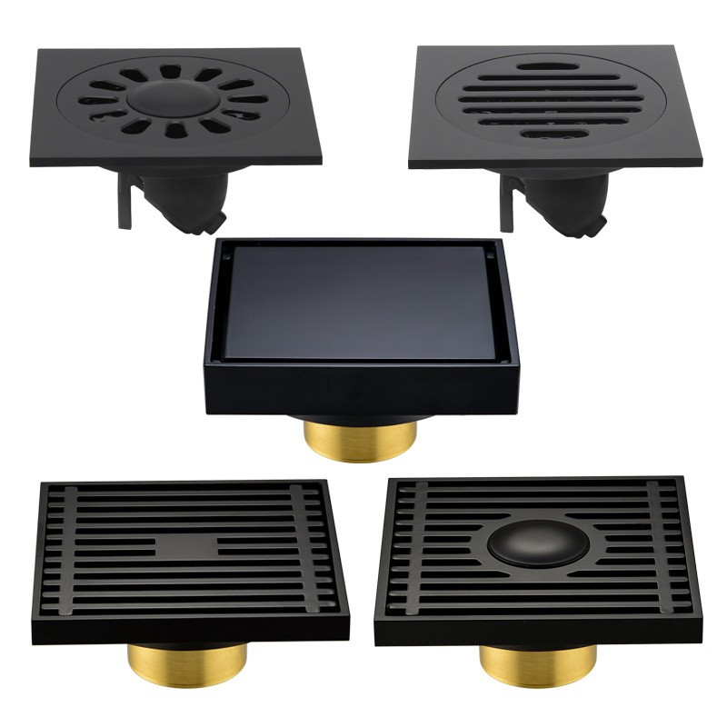Bathroom black all copper deodorant floor drain Powder room Washing machine dual-use sewer deodorant seal ring project