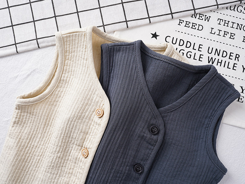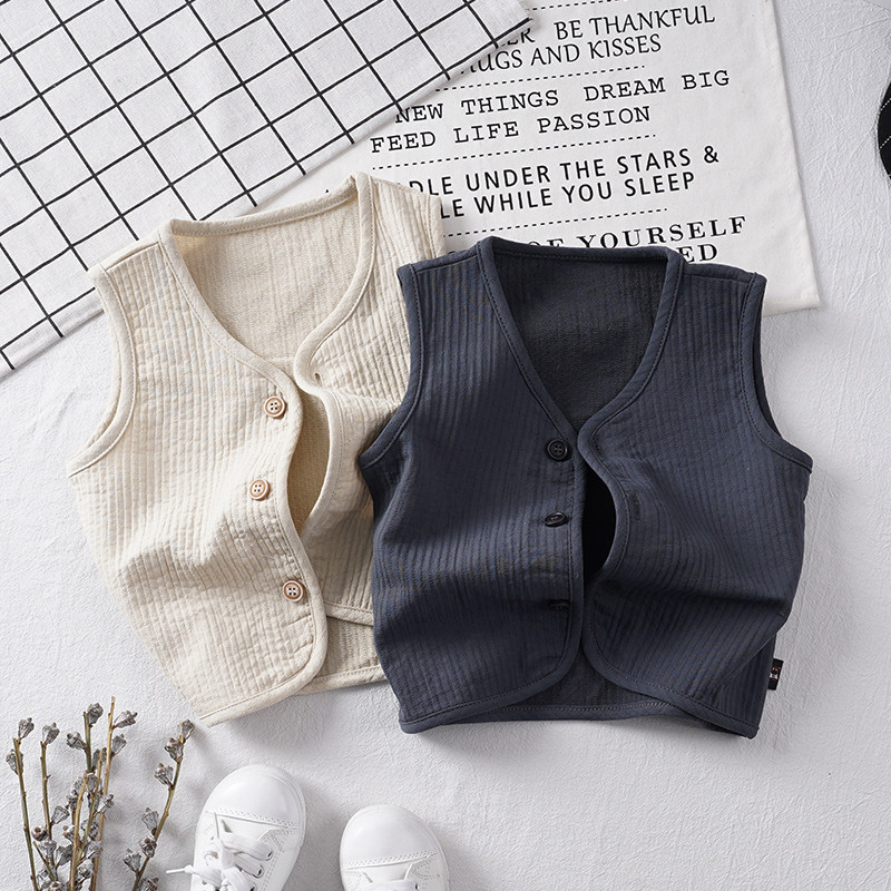 Literature and art Fan ~ Spring new male and female child neutral casual outlap vest Children's baby thin section pure cotton foreign canon shoulder vest
