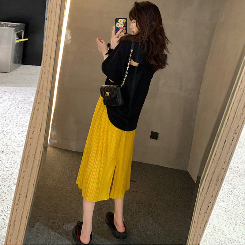 Net red maternity skirt spring summer 2022 new mid-length chiffon pants pleated skirt loose split versatile skirt
