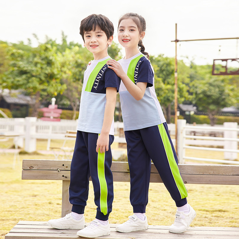 Primary school uniforms Spring and autumn style Kindergarten Garden uniforms New children Hide Cyan Long Sleeve Short Sleeve Sports Three Suits