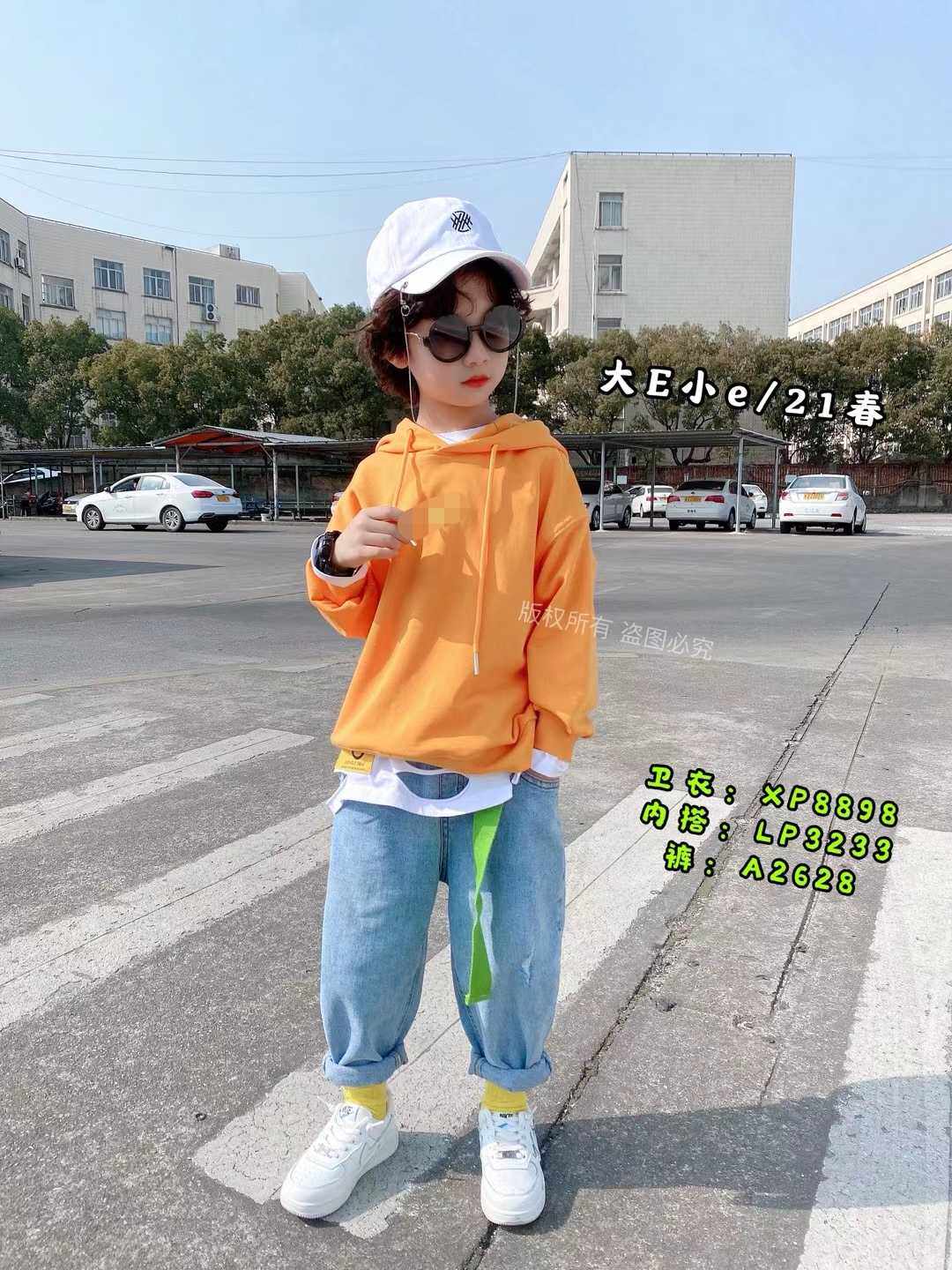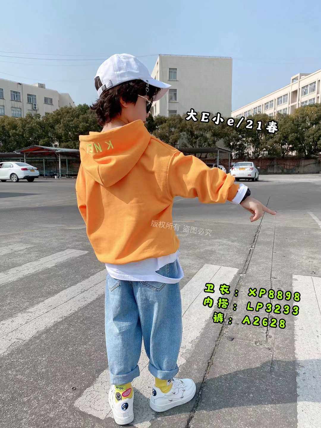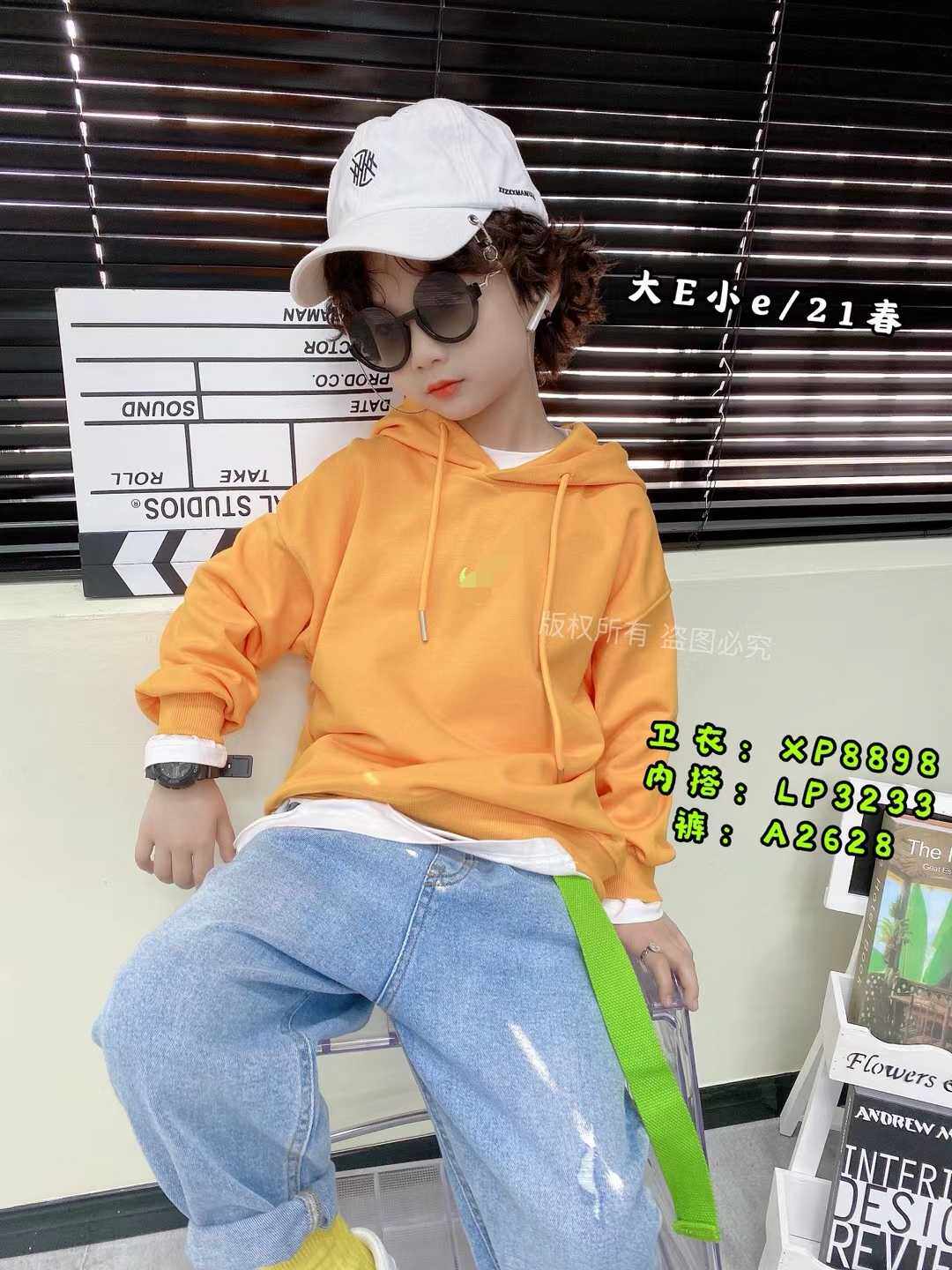 Hi E - Han Edition Children's Clothing Boys and Girls 2022 Fall Clothing New Orange Long Sleeve Hat Sweater 8898