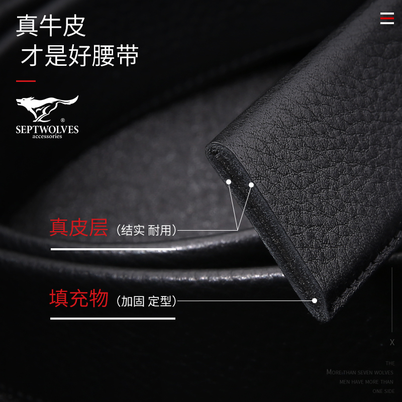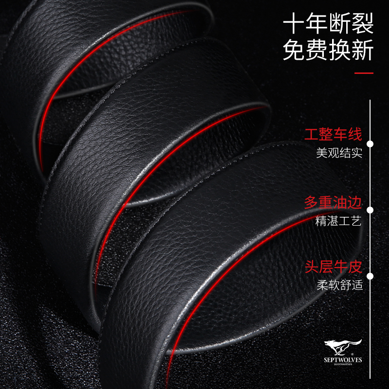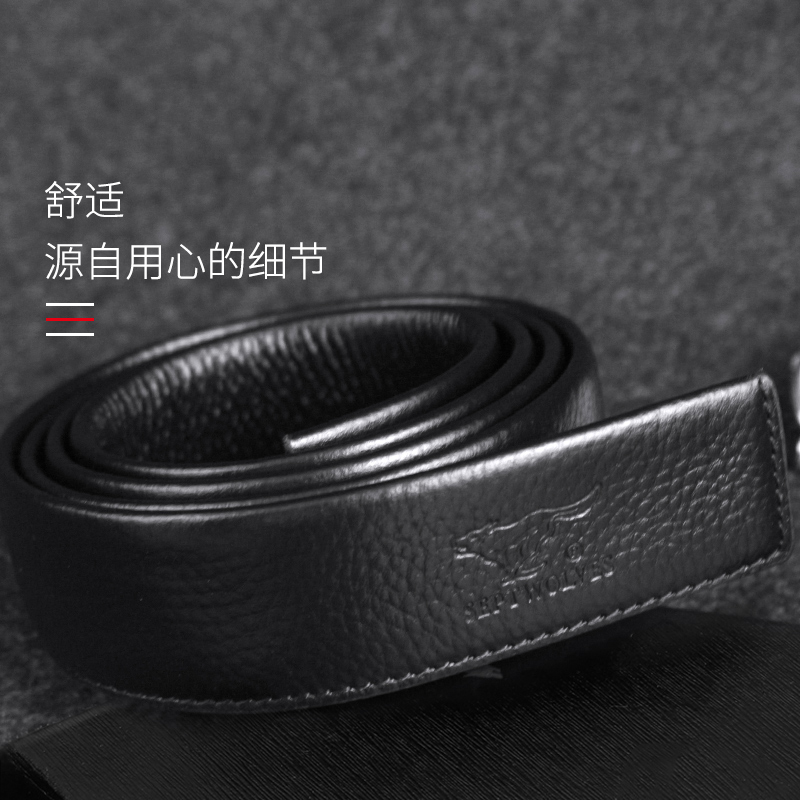 Seven wolves without scalp belt men's fur leather automatic button middle-aged head leather pants with fashion headless belt