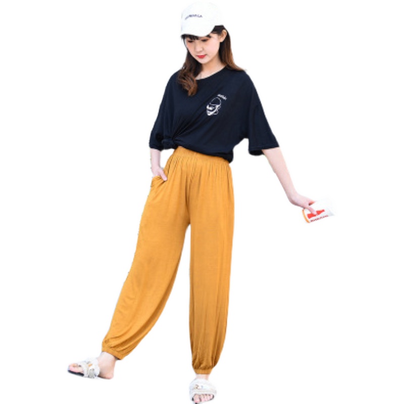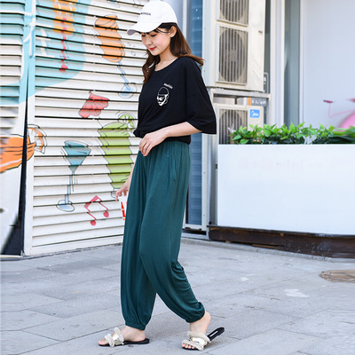 Summer oversized modal high waist loose yoga bloomers 200 catties fat MM plus fertilizer to increase home pajamas