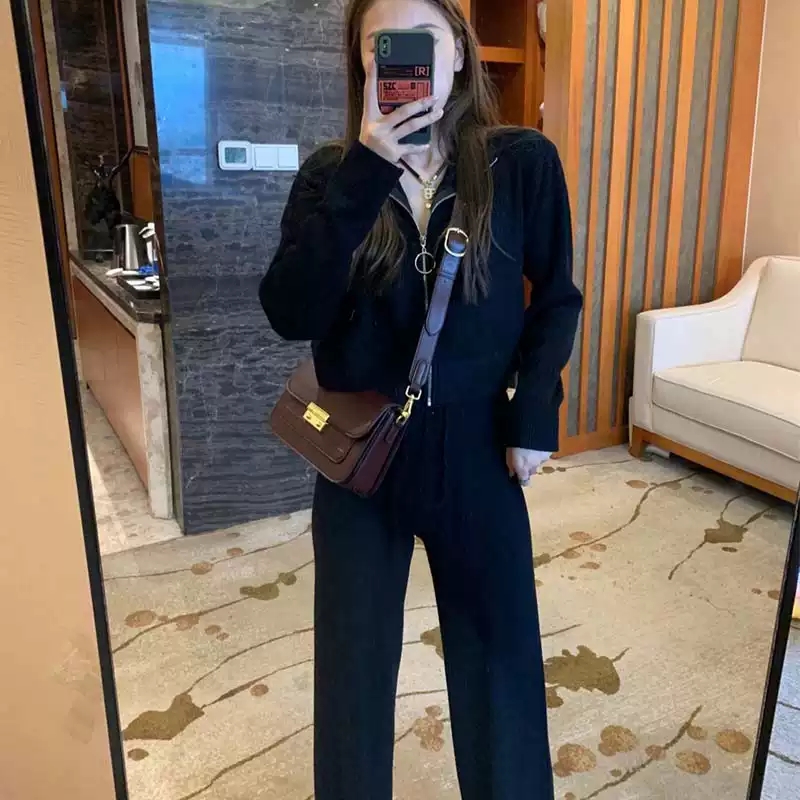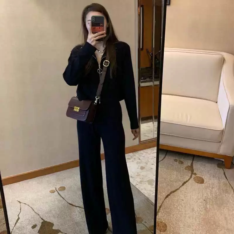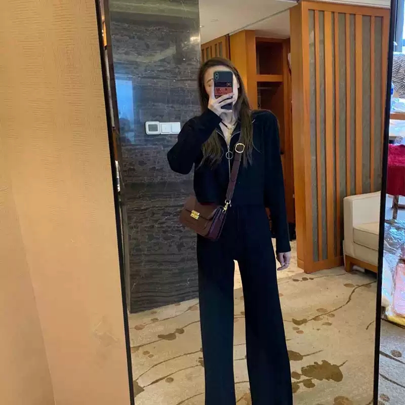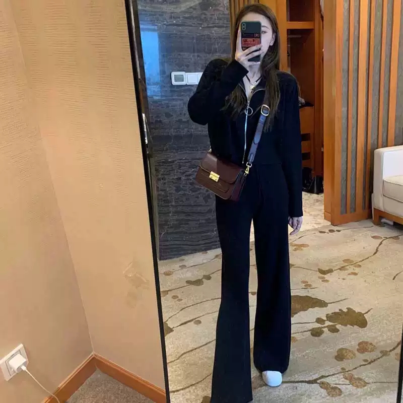 2021 spring new black sports and leisure suit female small fashion slimming net red fried street two-piece suit