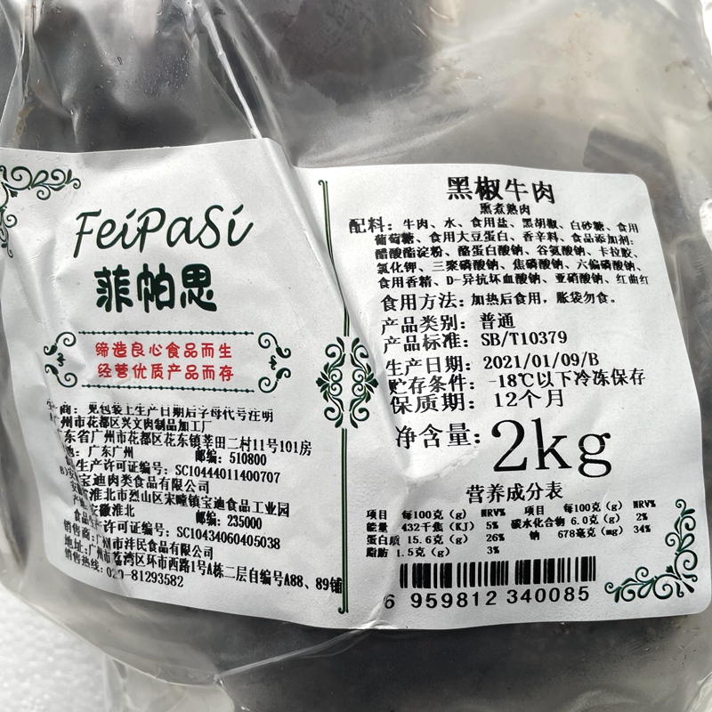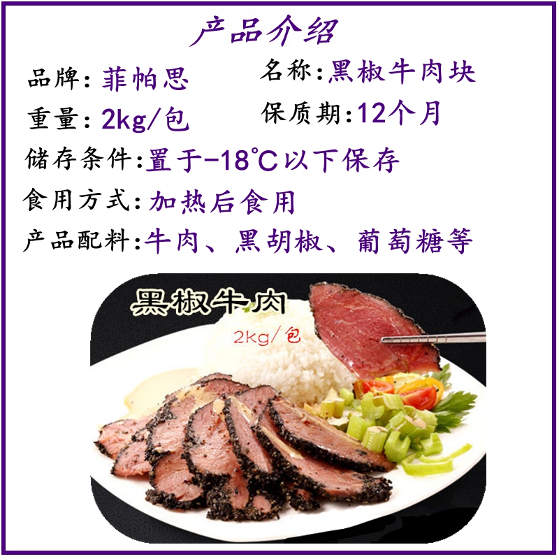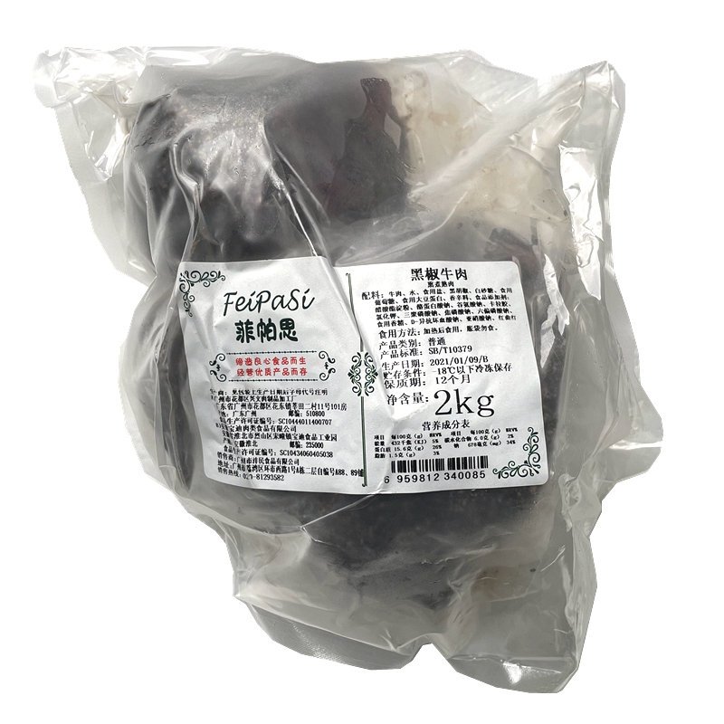 Fipath Black Pepper Beef Block 2KG Frozen Black Pepper Taste Beef Hotel Western Meal Salad Commercial Lumpy Beef