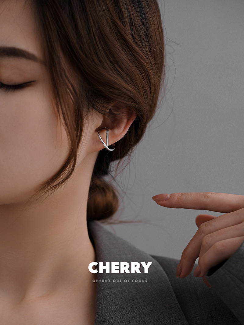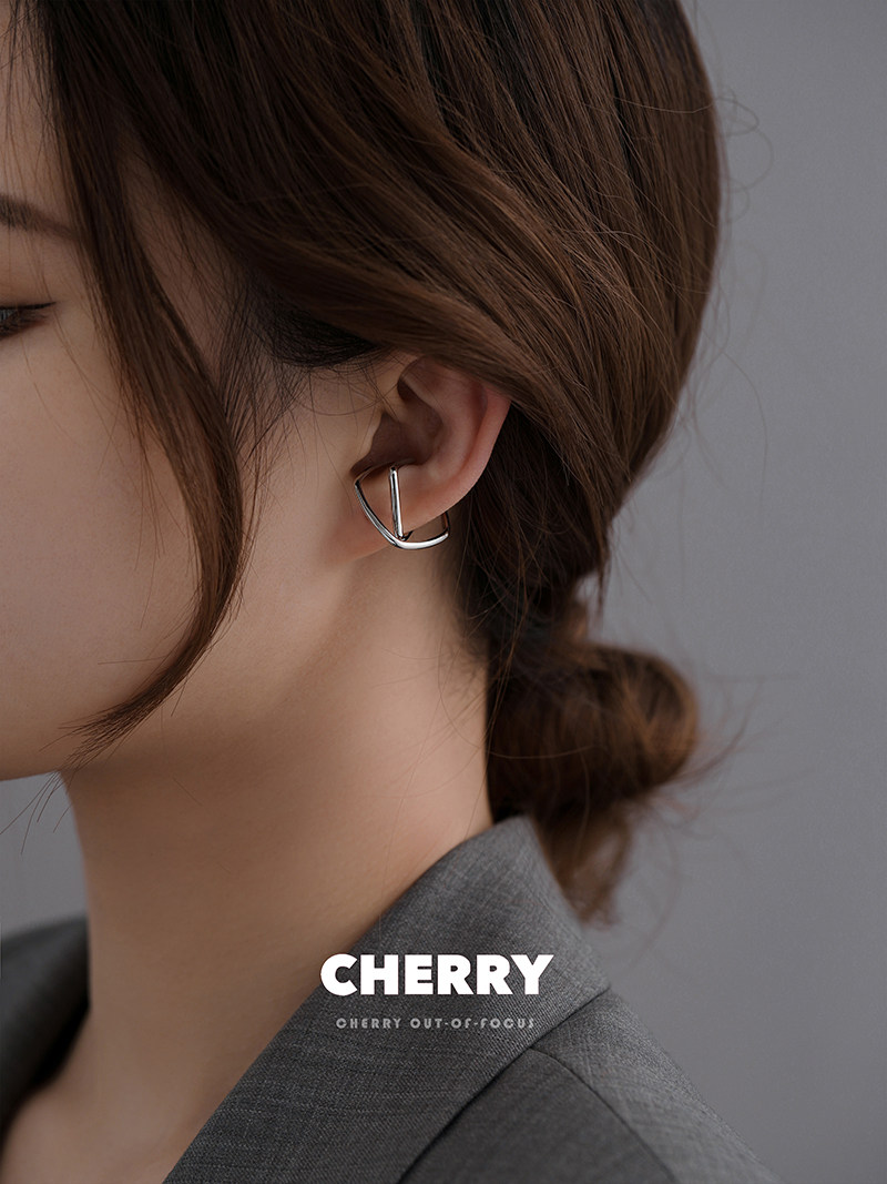 Double layer square silver ear clip (single) silver ear clip (single) double layer silver ear clip (single)