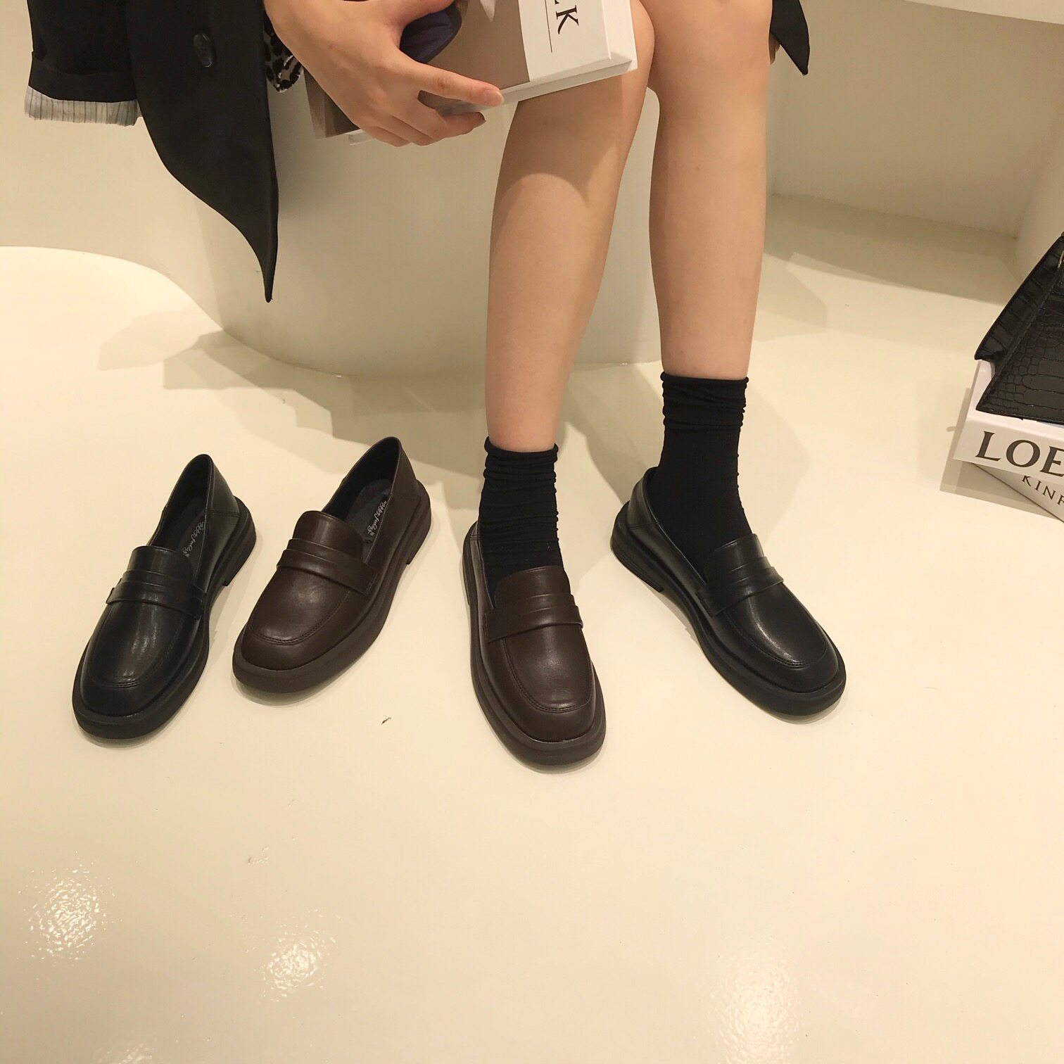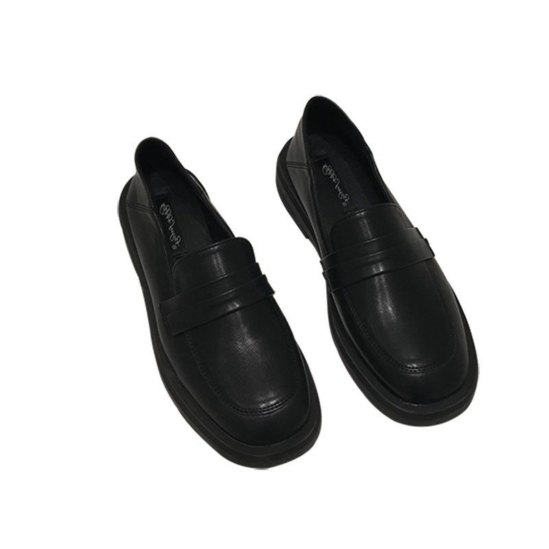 ITSK Lefu shoes female round head low heel with a foot of English wind black leather shoes