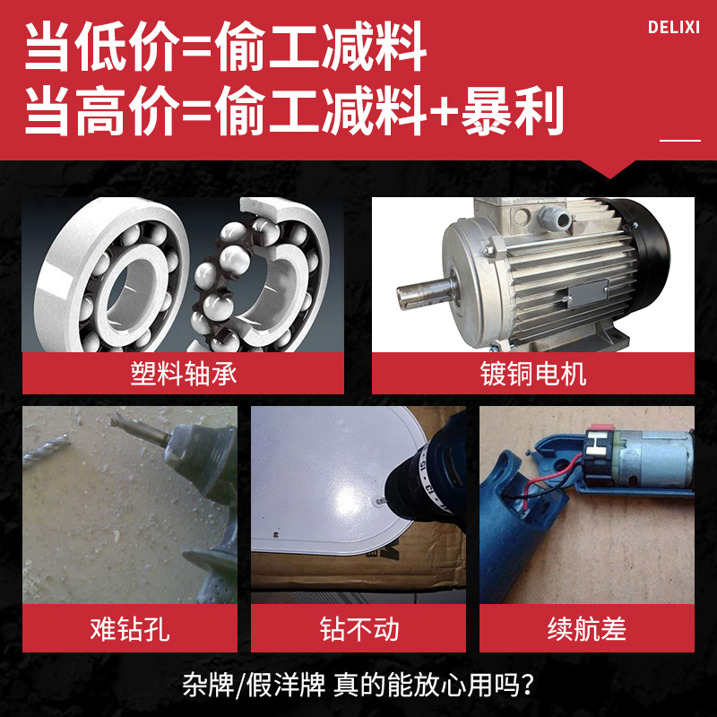 Delixi lithium rechargeable household multi-function flashlight drill rotary impact drill Pistol drill Electric screwdriver tool