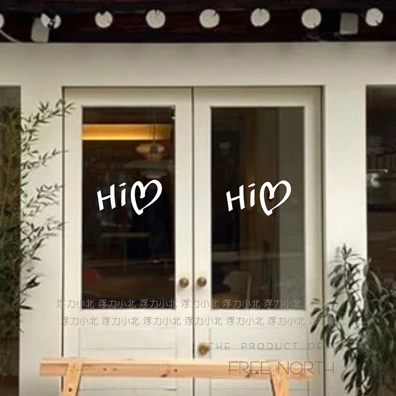 hello hello smiling face Nordic ins simple style decorative wall stickers clothing coffee shop window glass stickers