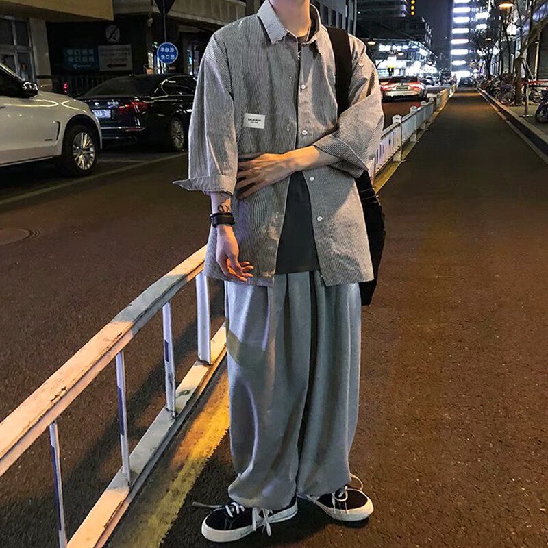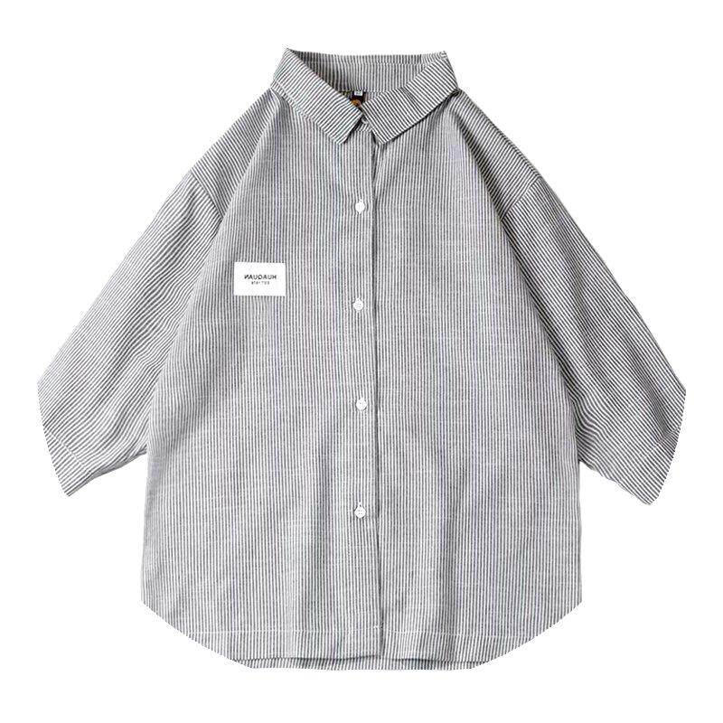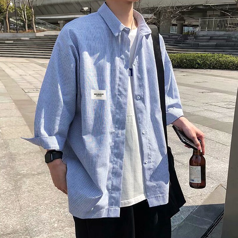 Striped Shirt Short Sleeve Male Korean Version Trend 2021 Summer Casual Handsome Air Port Wind Loose 70% Sleeve Shirt Jacket