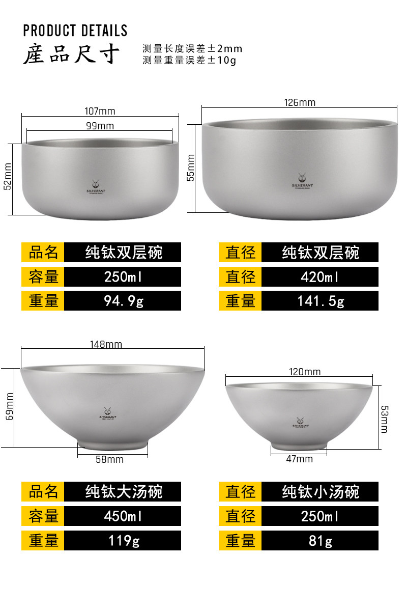 250ML pure titanium double layer round bowl 250ML pure titanium double layer bucket hat bowl 420ML pure titanium double layer round bowl 450ML pure titanium double layer bucket hat bowl