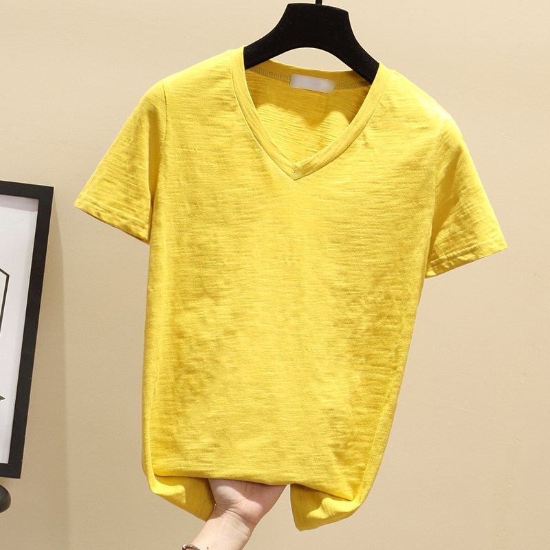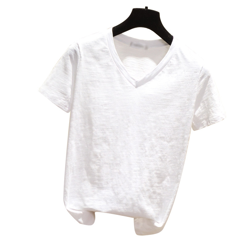 Net red T-shirt women's pure cotton loose short-sleeved solid color simple T-shirt slub cotton thin Korean version top summer half sleeve