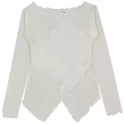 2021 Spring and Autumn New V-neck white base shirt female slim body with long sleeve Joker T-shirt asymmetric coat foreign pie