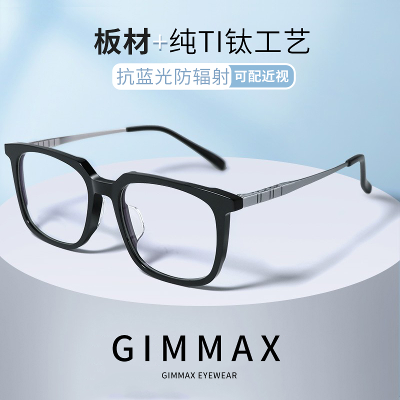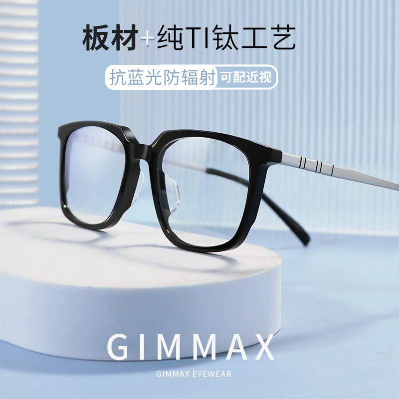 Men's black frame myopia glasses can be equipped with degrees of anti-blue light color changing glasses anti-radiation eye protection flat eyes tide model