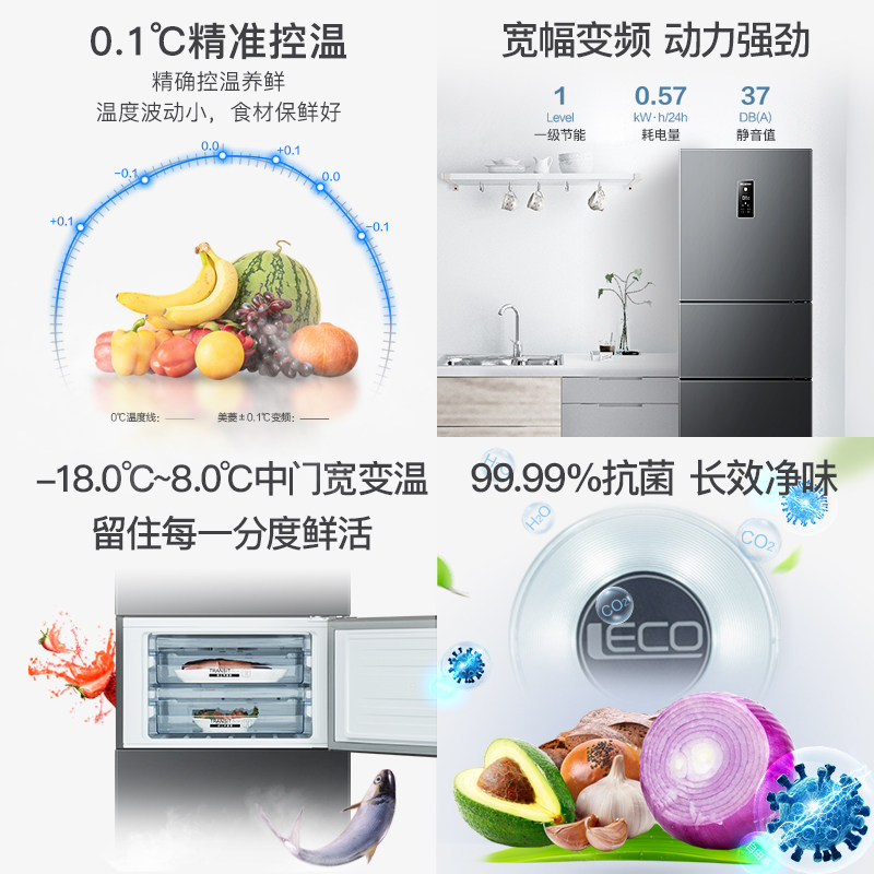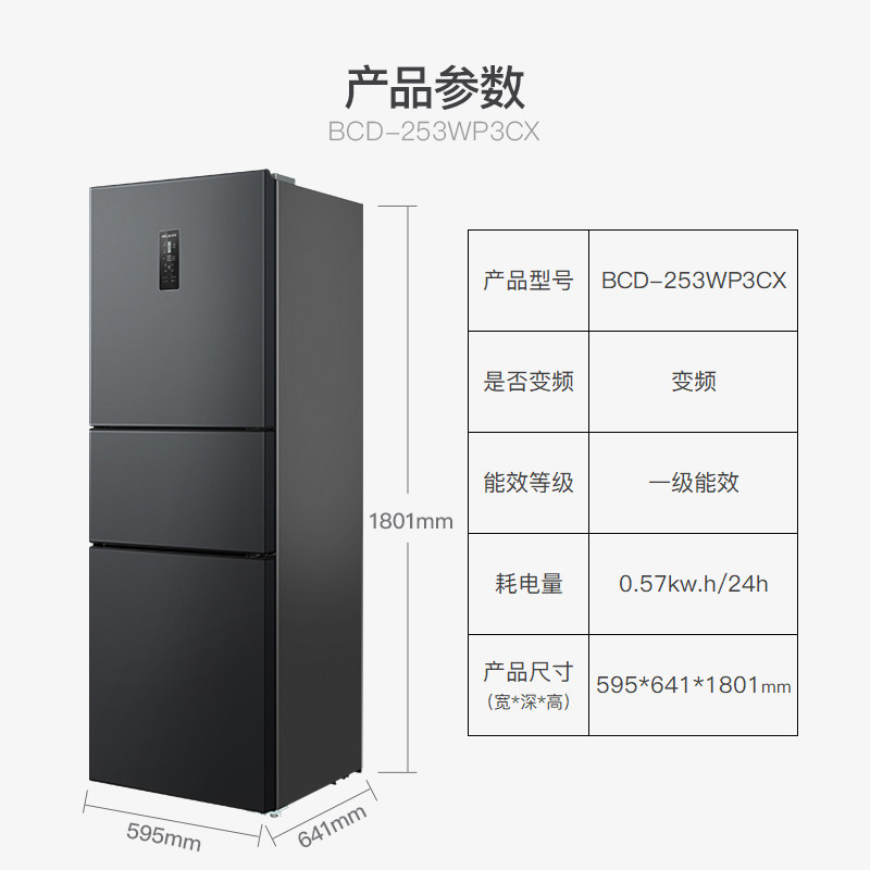 (Ion net) Meiling 253 liter three-door frost-free kitchen home rental energy saving dormitory Xiaoice box official
