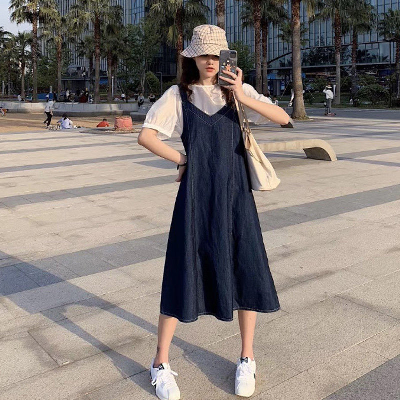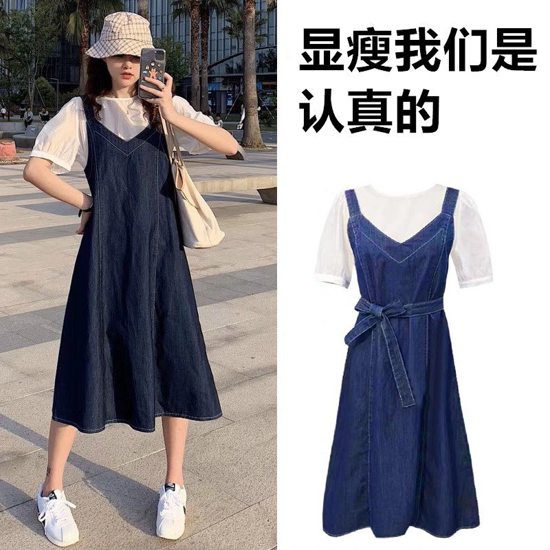 2021 new maternity dress spring and summer two-piece maternity dress denim hold baby bag skirt net red western style suit summer