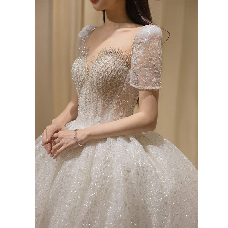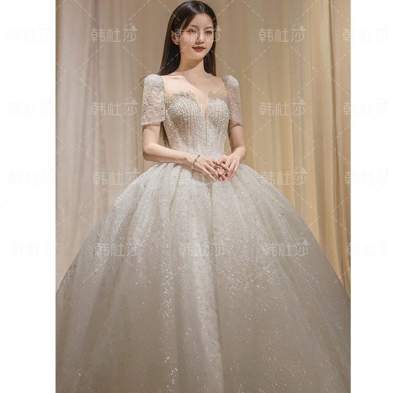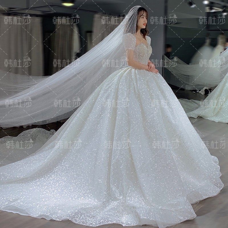 Main wedding dress 2021 new bride 2020 pregnant woman starry sky big tailing French little woman go out gauze light