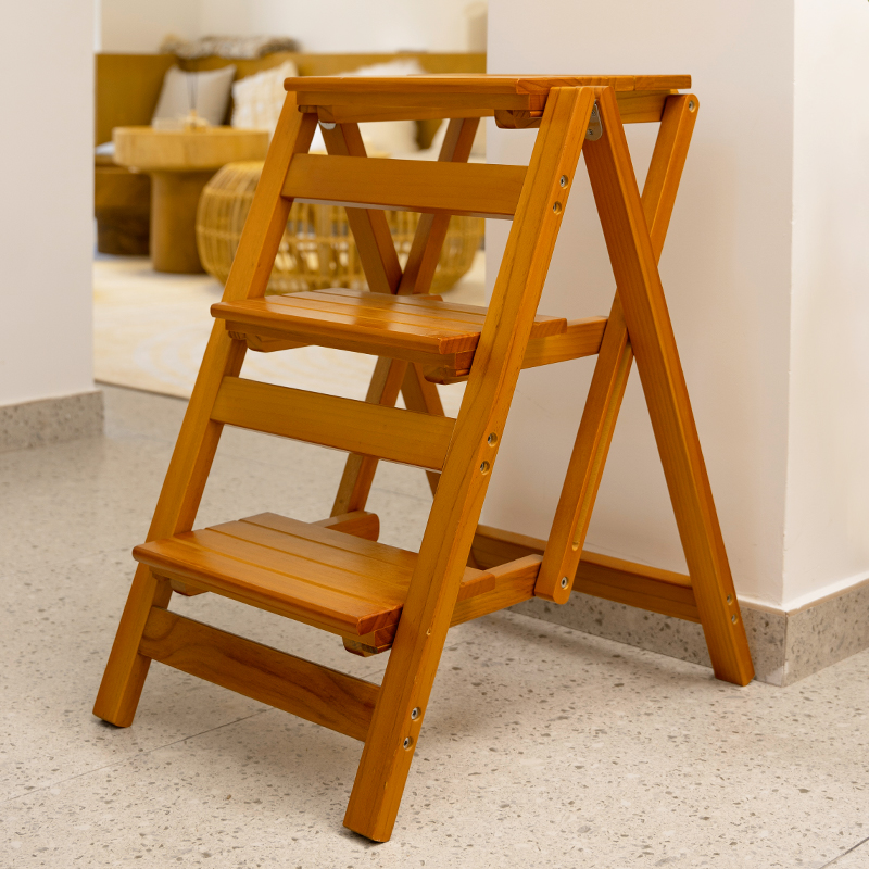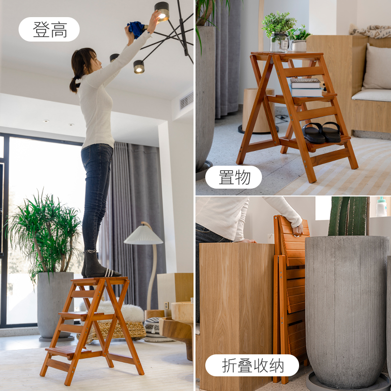 Cartier solid wood step stool home folding ladder stool dual-purpose multi-functional three-step climbing step stool stair chair