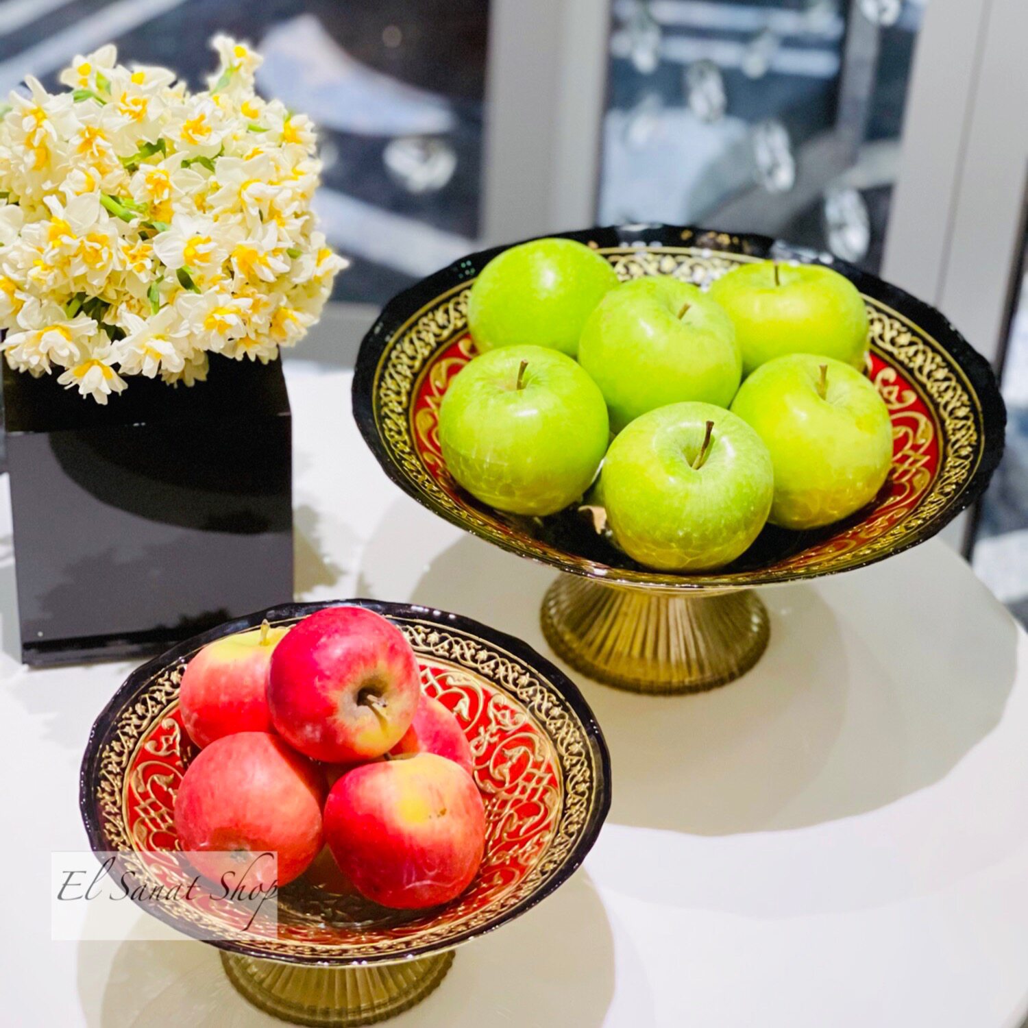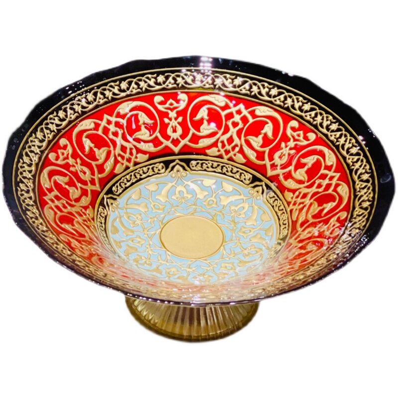 21cm imported high footed fruit pan 31cm imported high footed fruit tray A large small import high foot fruit pan hand colored drawing will have uneven mind and discrepted with a small bubble in the glass, mind beware of the hand