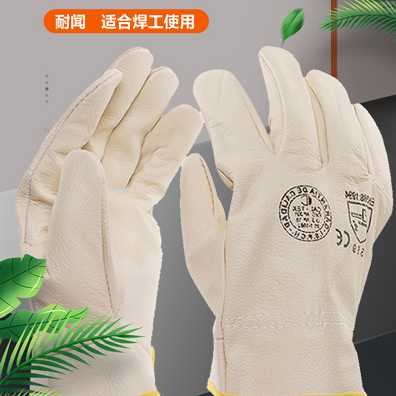 Imported cow leather labor protection gloves abrasion resistant high temperature sub-finger outdoor operation electric welding short thermal insulation mechanical welders