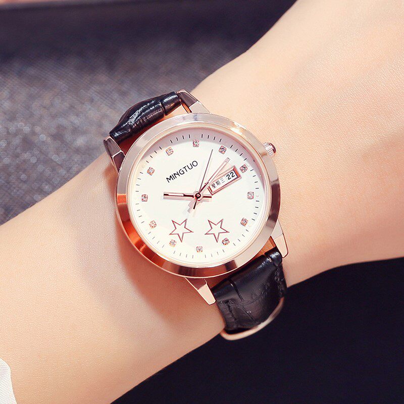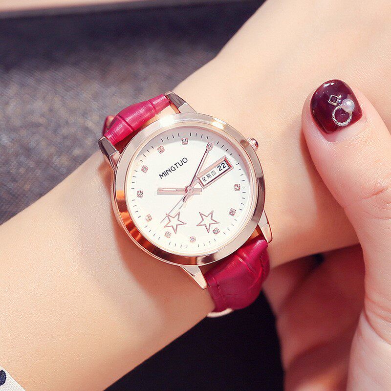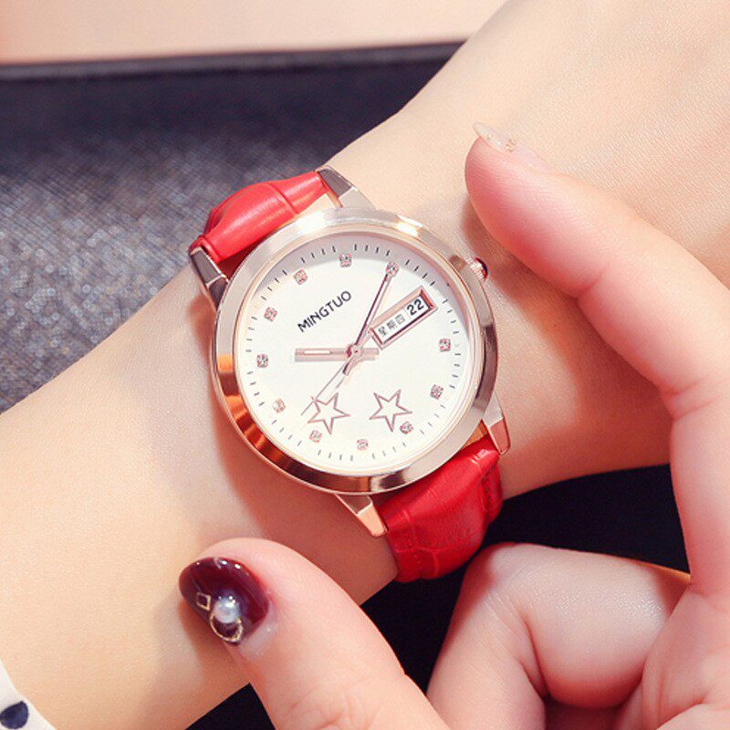 Brand-name double calendar luminous waterproof watch girl junior high school and high school primary school students Korean version of simple temperament belt watch