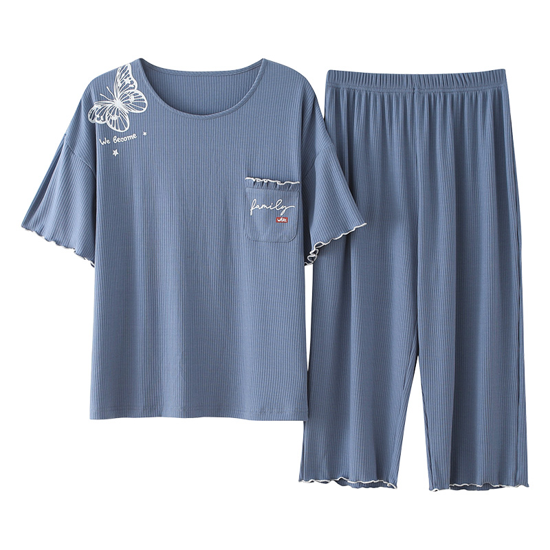 Surissa Pajamas Lady Summer Modale Cotton Short Sleeves Seven Pants Two-piece Style Suit Summer Thin Ice Silk Home Clothing