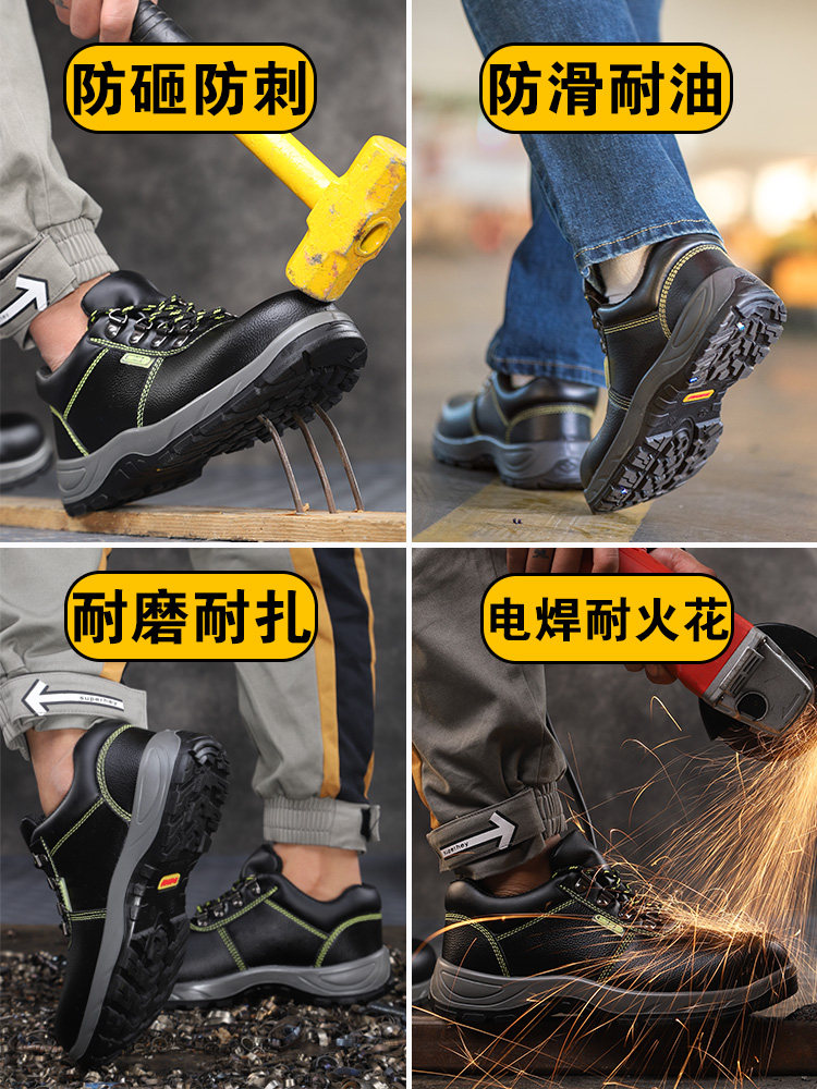 B with the porous solid solid bull skin anti-smashing stabbing (ruler A without hole solid solid solid solid bull skin anti-smashing stabbing proof of piercing shoes (ruler C-same porous D plus cotton shoes Solid sole anti-smashing and stabbing protection of fourth season high-gang yellow