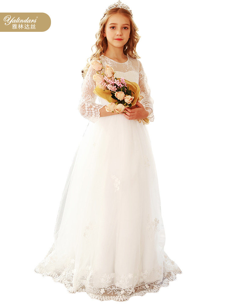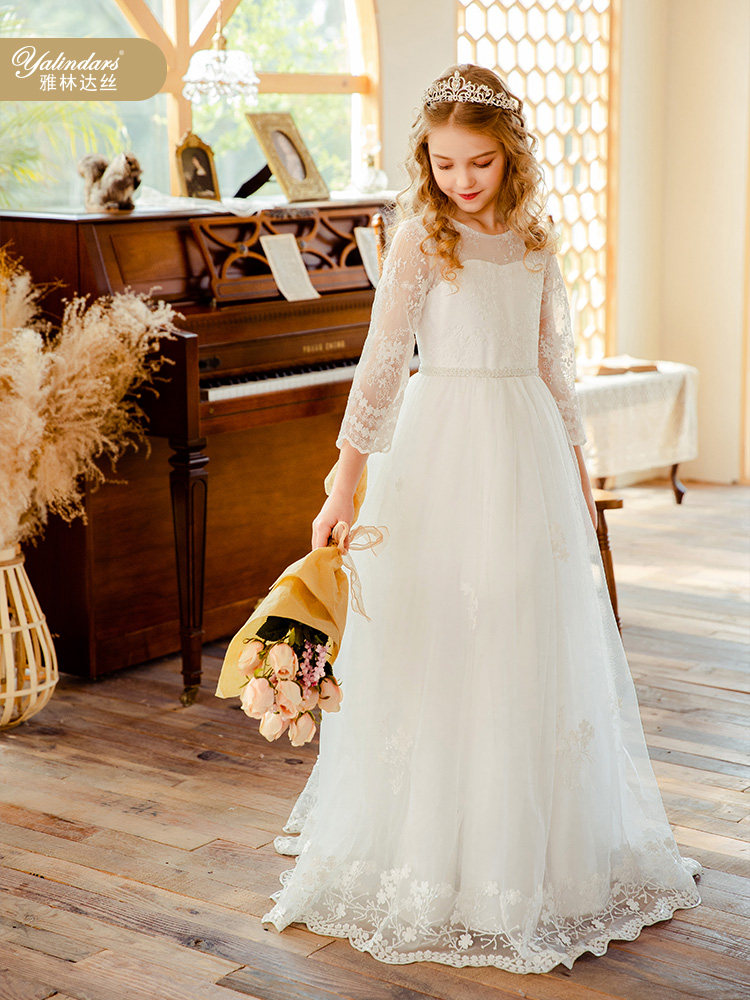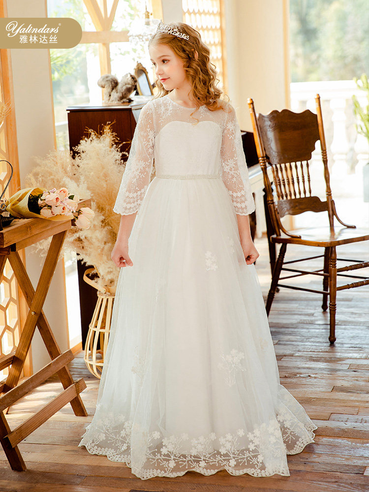Yalinda silk flower girl wedding little girl dress 2022 Xiayang style princess dress piano performance catwalk evening dress