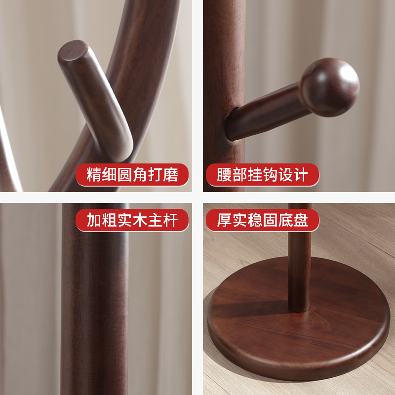 Coat rack New Chinese style coat hanger floor rack all solid wood multifunctional floor bedroom simple living room hanger