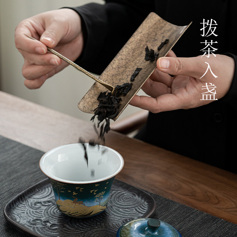 Handmade copper hammer textured tea with three sets of tea then tea needle tea plucking for home taking tea Awakening Tea Utilita Tea Accessories