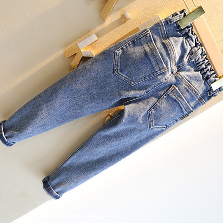 South Korea 2022 new children's clothing spring and autumn children girls break holes in jeans fashion baby foreign air fashion long pants tide-Taobao