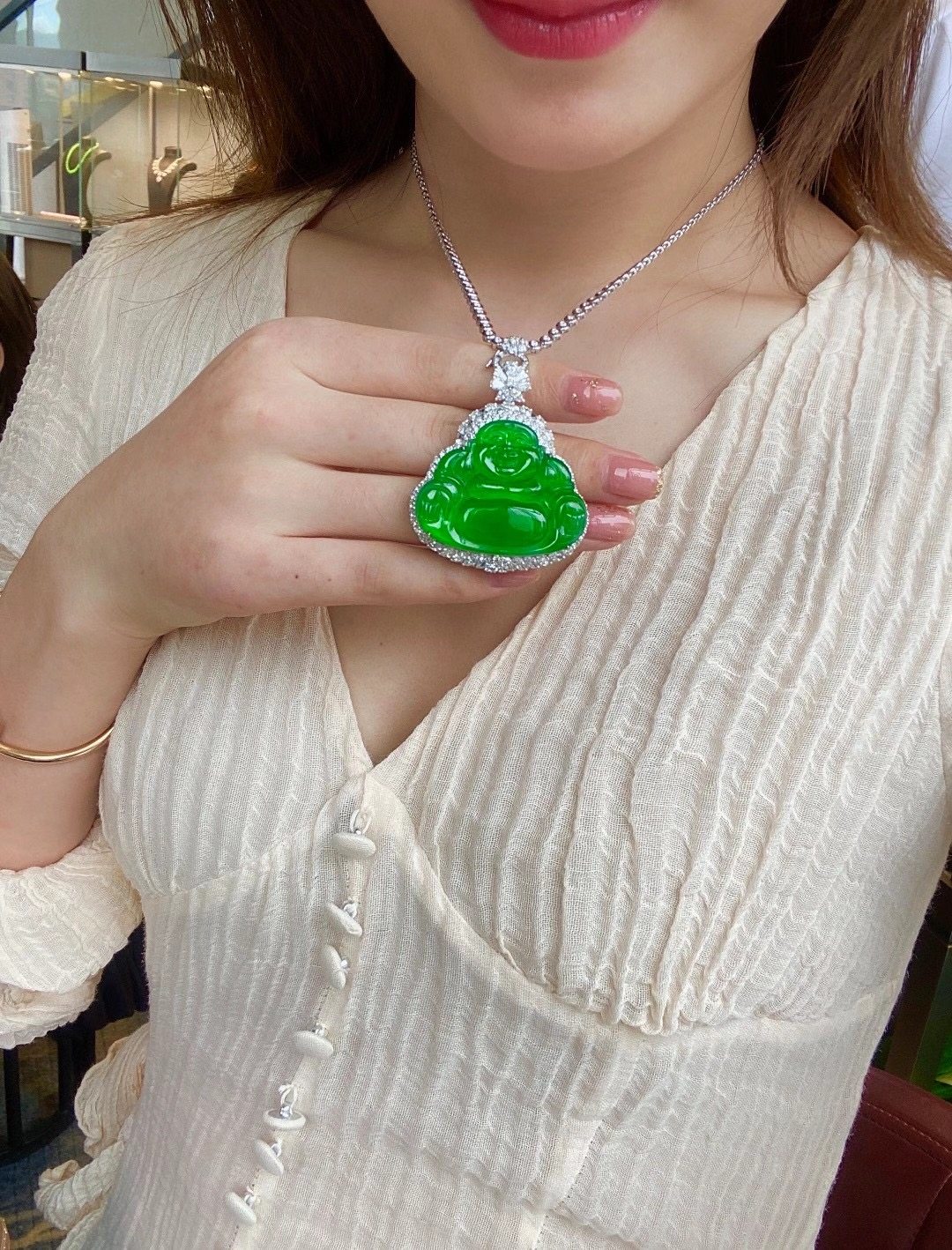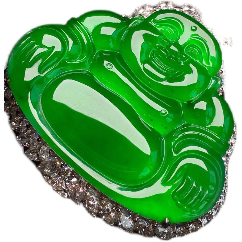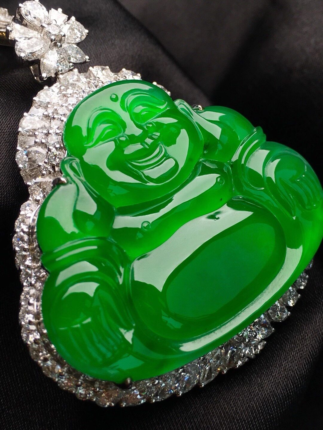 Ice seed full of green jade Buddha male pendant natural Myanmar a goods Zhengyang green jade Buddha emperor green laughing Buddha pendant