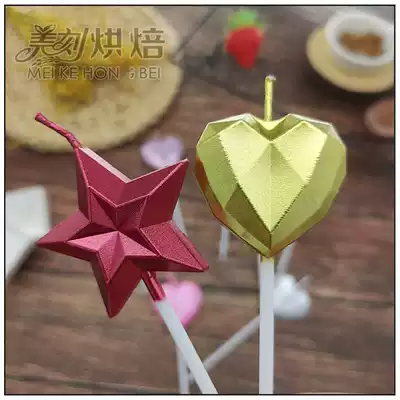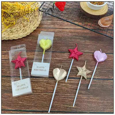 Net red diamond love five-pointed star birthday candle gold-plated star heart-shaped romantic baking cake decoration decoration