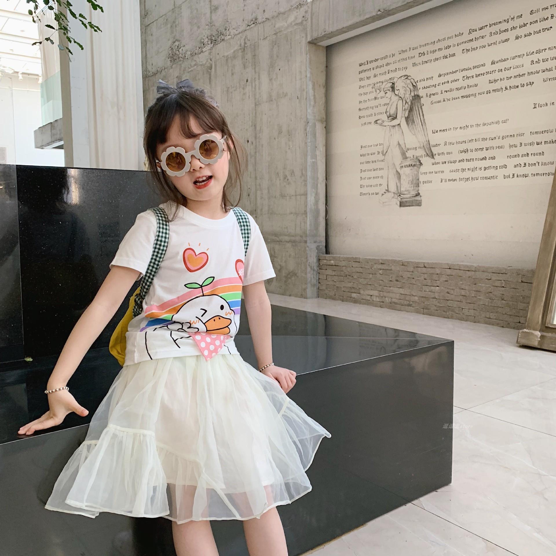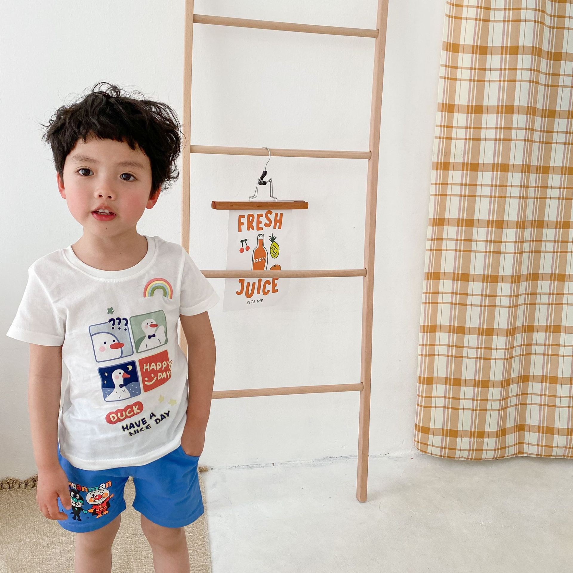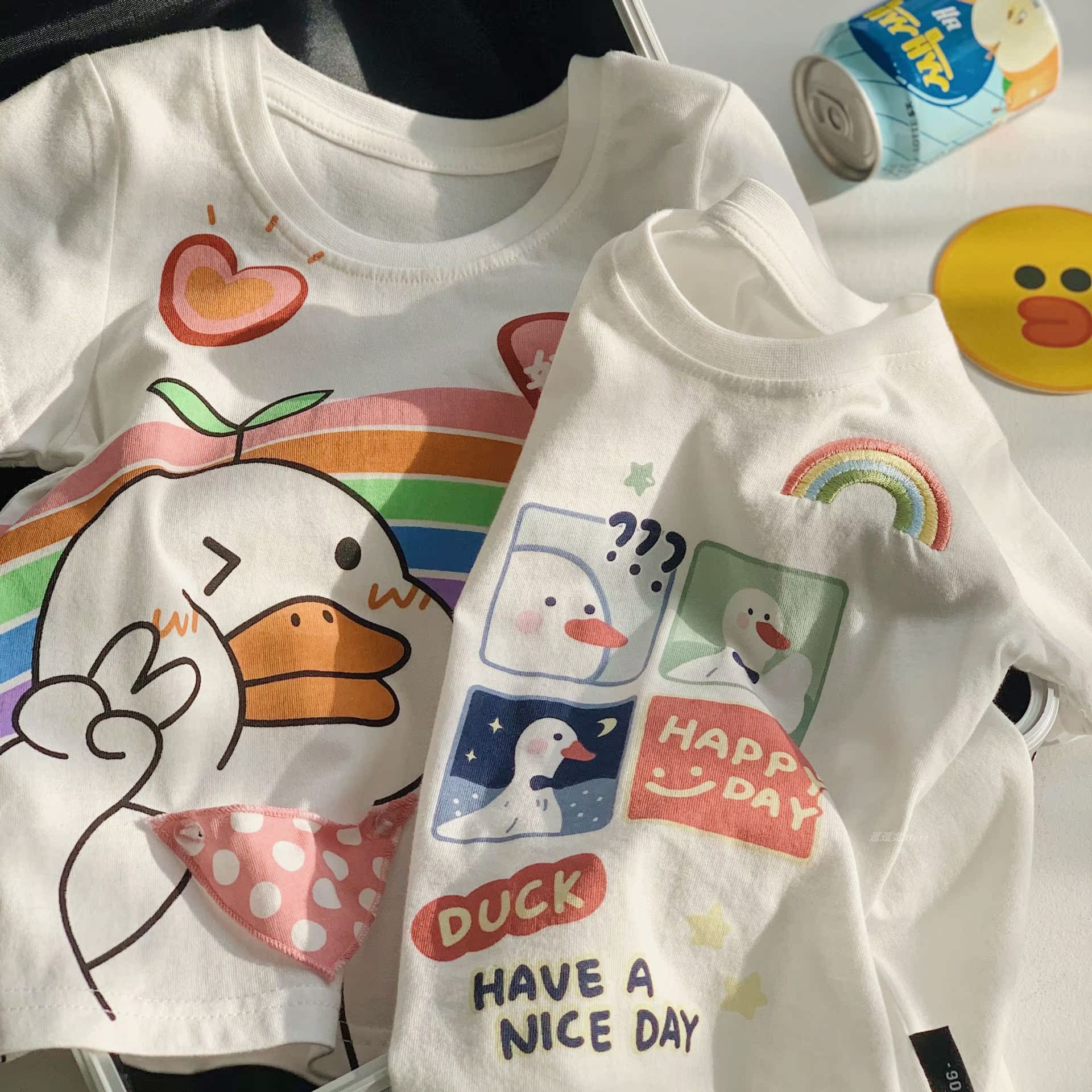2021 spring and summer models good luck duck stay up late duck children summer short-sleeved T-shirt boys and girls cartoon short-sleeved children's clothing tops