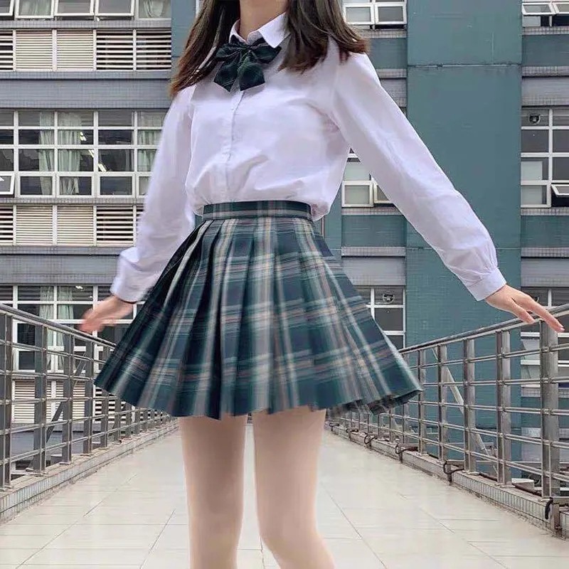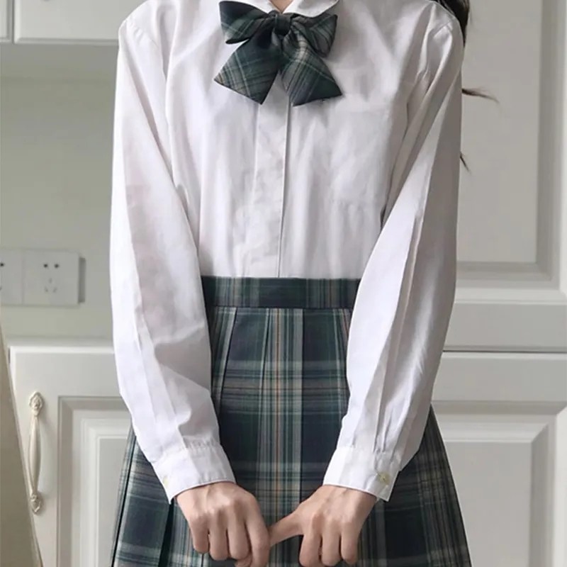 Forest plaid skirt bow tie short-sleeved shirt forest plaid skirt bow tie long-sleeved shirt forest plaid skirt bow tie forest single skirt white Ming plaid skirt pure white short sleeves same bow tie white night neon plaid skirt pure white short sleeves
