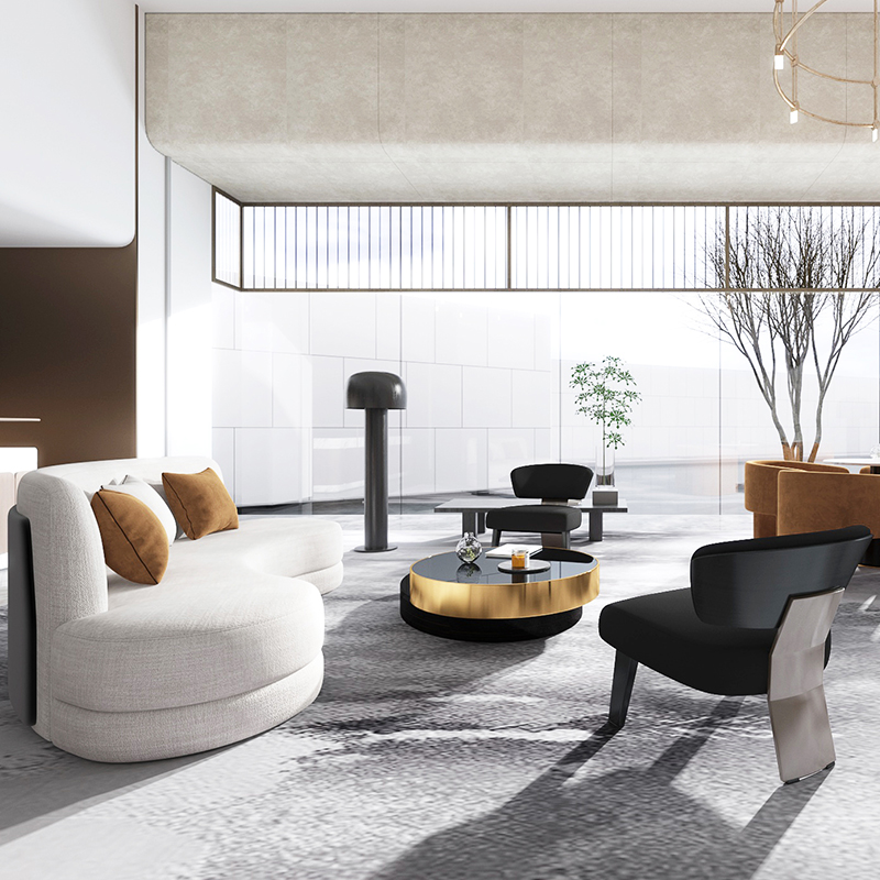 Sample house exhibition center reception negotiation fabric curved sofa simple modern beauty salon hotel lobby leisure light luxury furniture