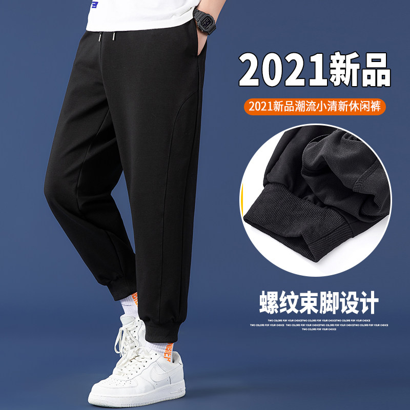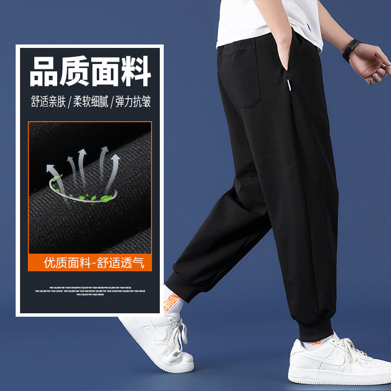 Black sports pants men's spring and autumn 2022 new loose bunches pants pure color minimis about 100 hitch a boy's pants tide