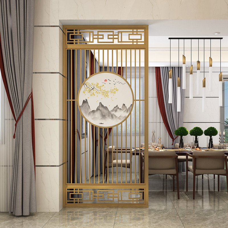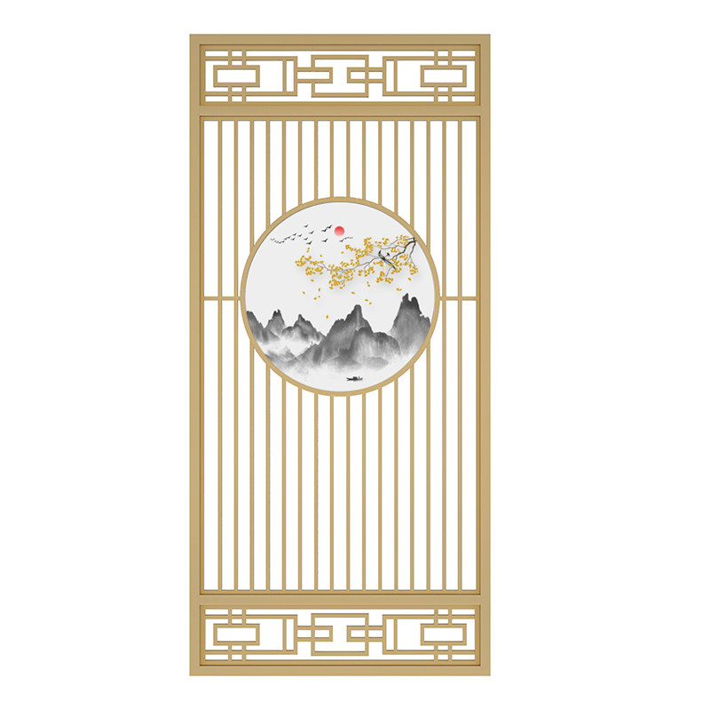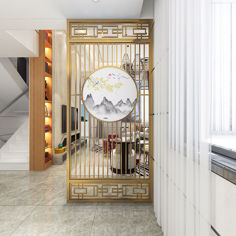 New Chinese Hollowed-out Flower Lattice Rose Gold Stainless Steel Screen Living Room Entrance Partition Metal Genguan Background Wall Custom