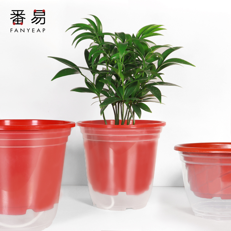 Minimalist gold Graspberry sloth flower pot automatic water suction flower pan round free watering plastic basin transparent water storage special basin