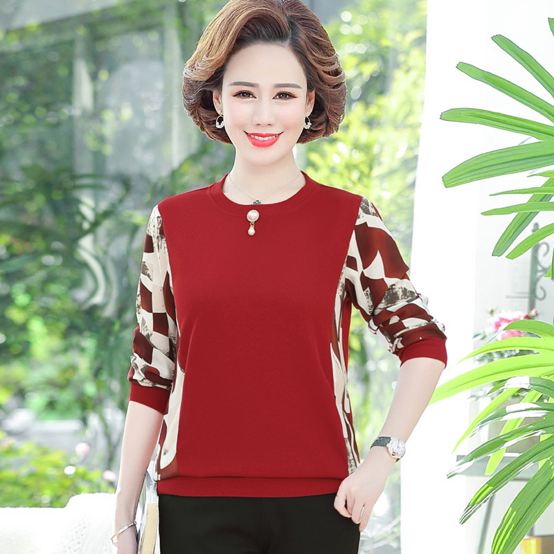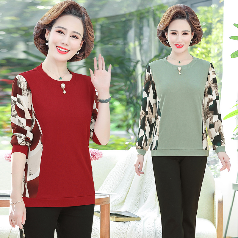 Middle Aged Mom Loaded With Undershirt Woman 2022 Autumn Dress New T-shirt Middle-aged Woman Dress Foreign Pie with a large size for a large size