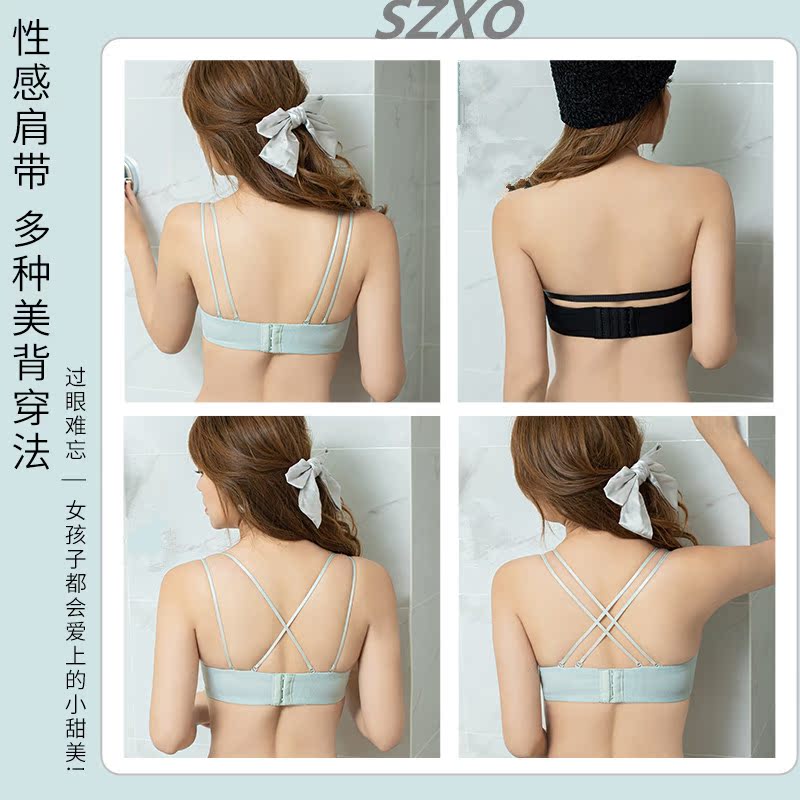 South Korea SZXO underwear women gather small chest without rim sexy beauty back Removable invisible non-slip underwear set