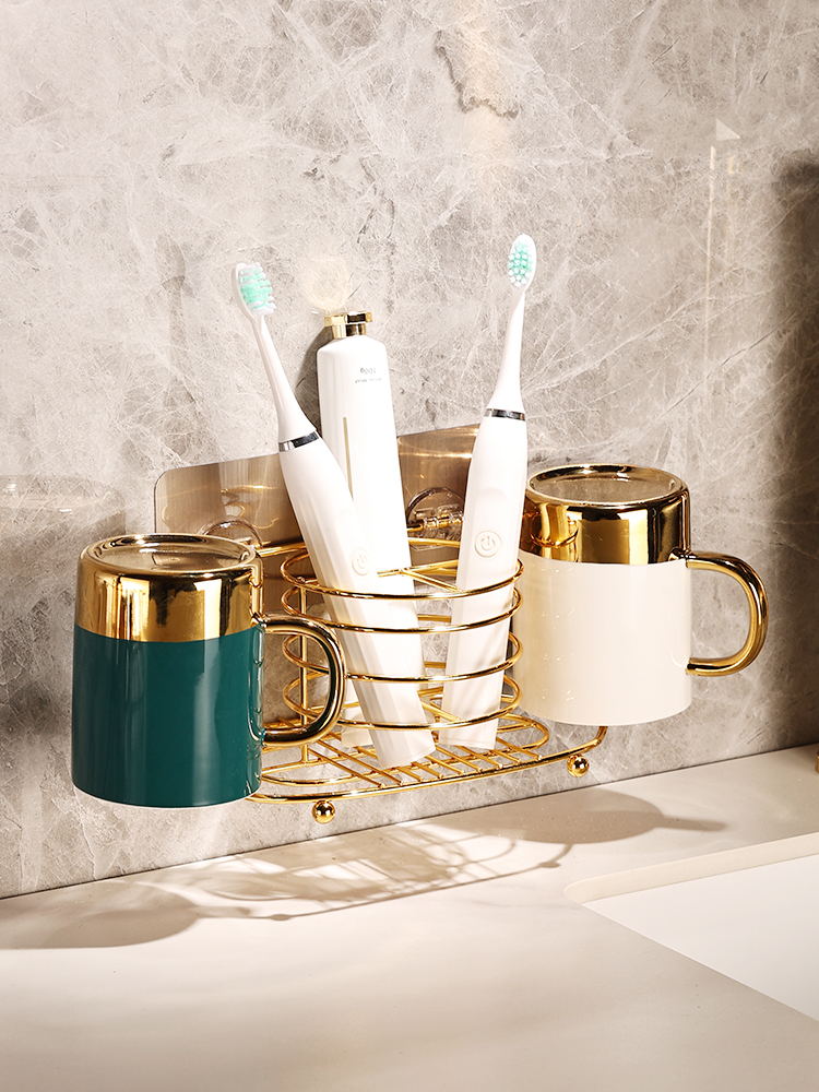 Toilet free of perforated toothbrush shelve cup toothbrushing cup toothbrushing cup dental cylinder suit hanging wall type wall-mounted holding frame-Taobao