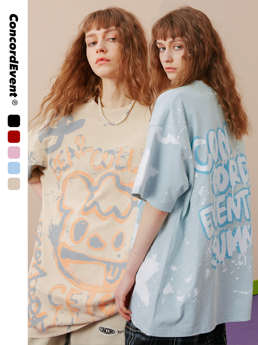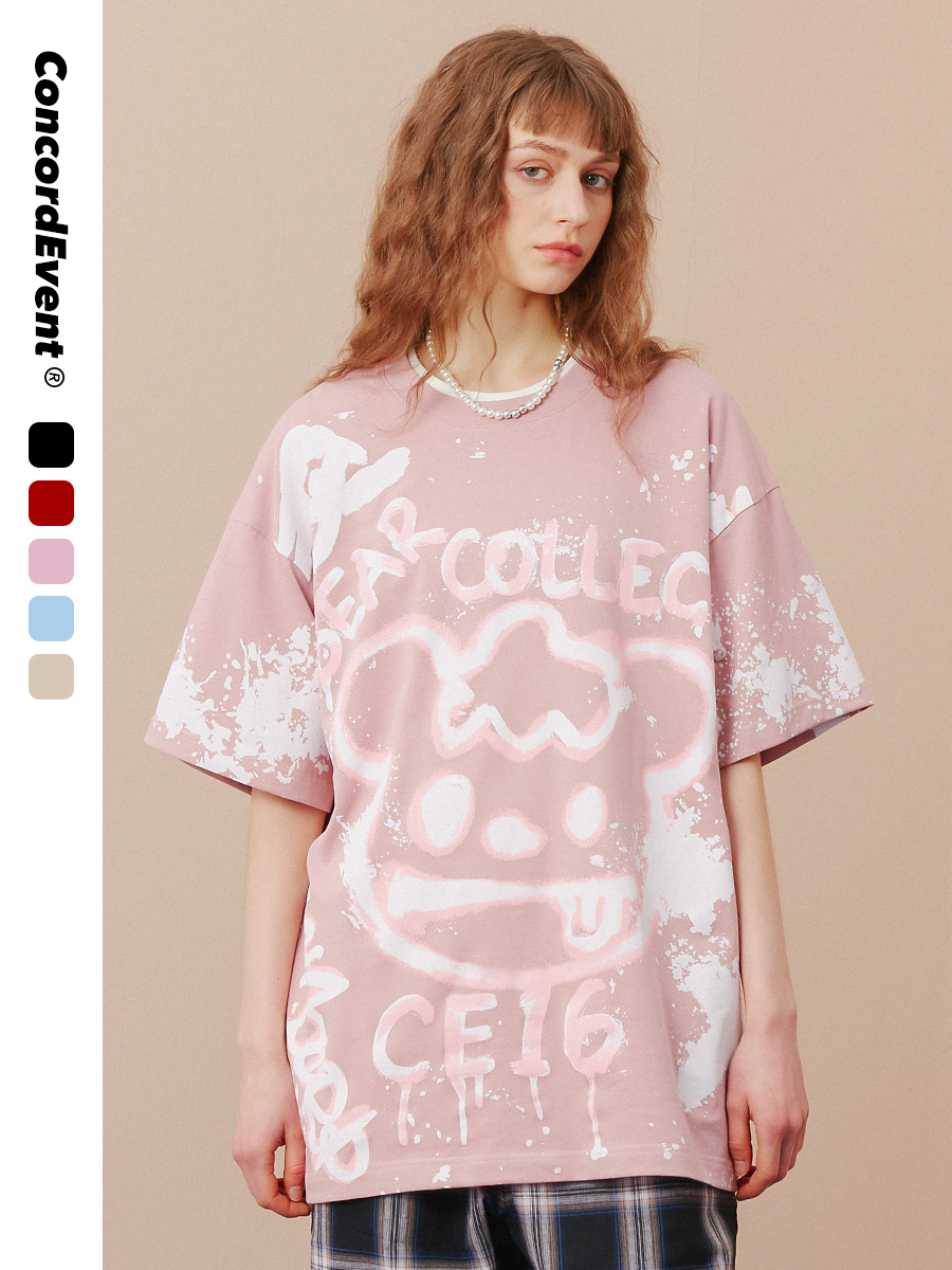 CONCORDEVENT tide brand T-shirt 2022 couples wear summer short-sleeved European and American bear loose half-sleeved T-shirt