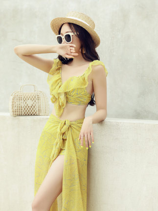 Vito's new sexy swimsuit women's three-piece bikini boxer tube top steel bracket gathered split hot spring swimsuit