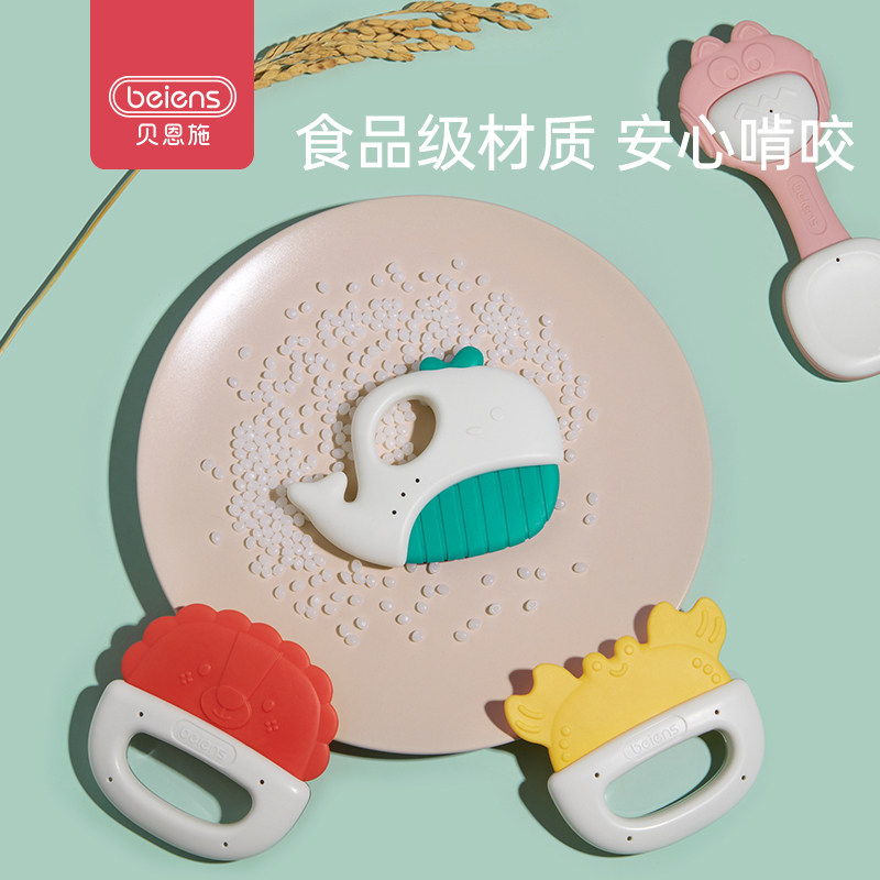 Bainshi baby hand rattle toy puzzle early education newborn can chew tooth-fixing device baby 0-3-6 months 1 year old