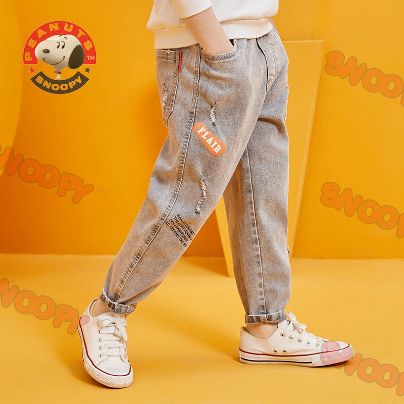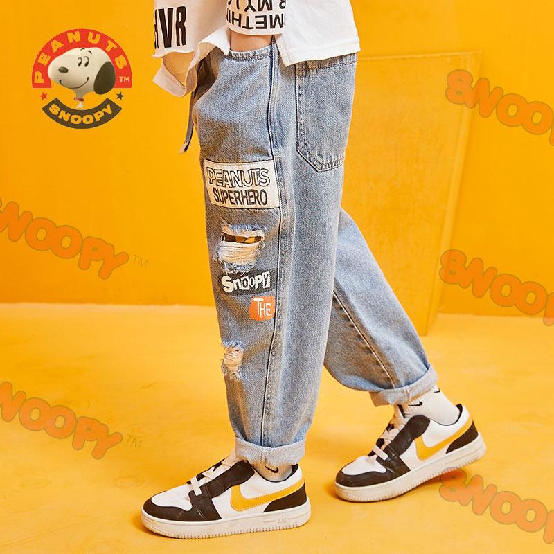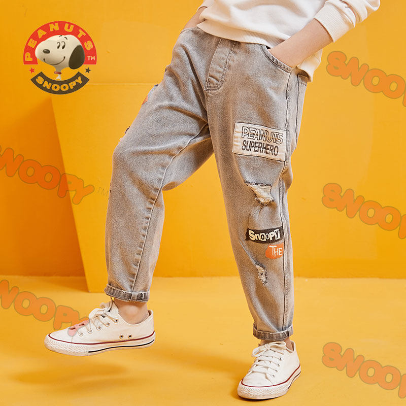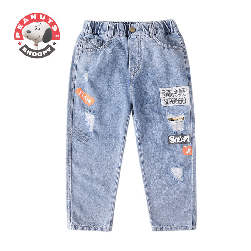 Snoopy children's clothing jeans 2022 spring and autumn new boys' casual hole children's old pants thin section trousers trend