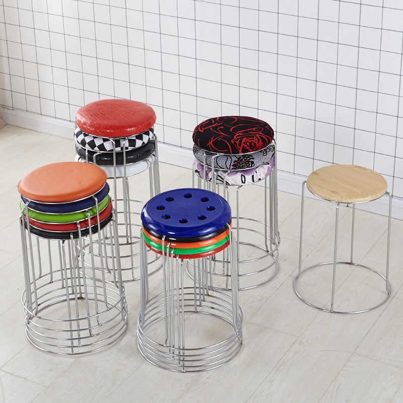 Round stool solid steel bench adult leather noodle soft surface four legs bench bench bench special price =